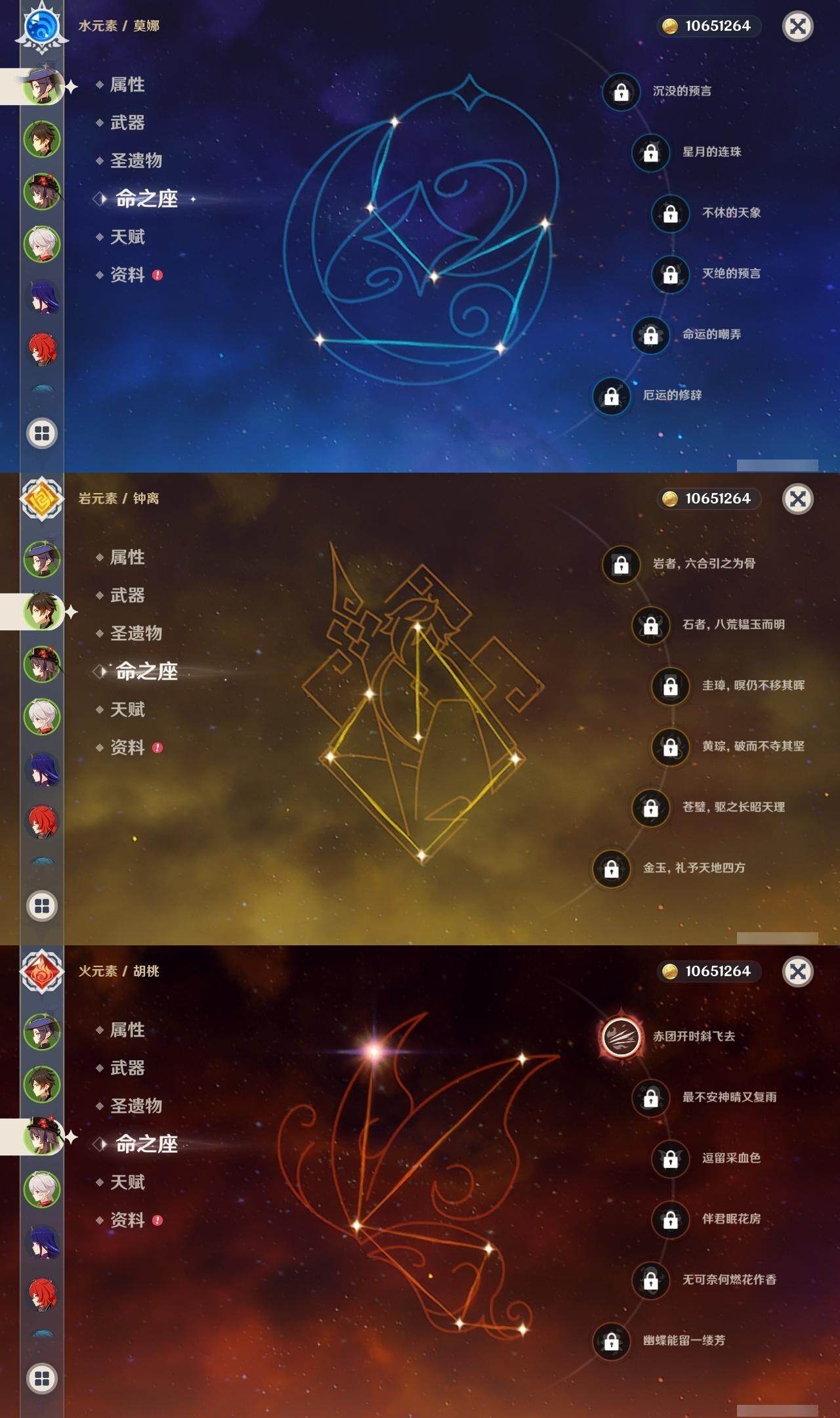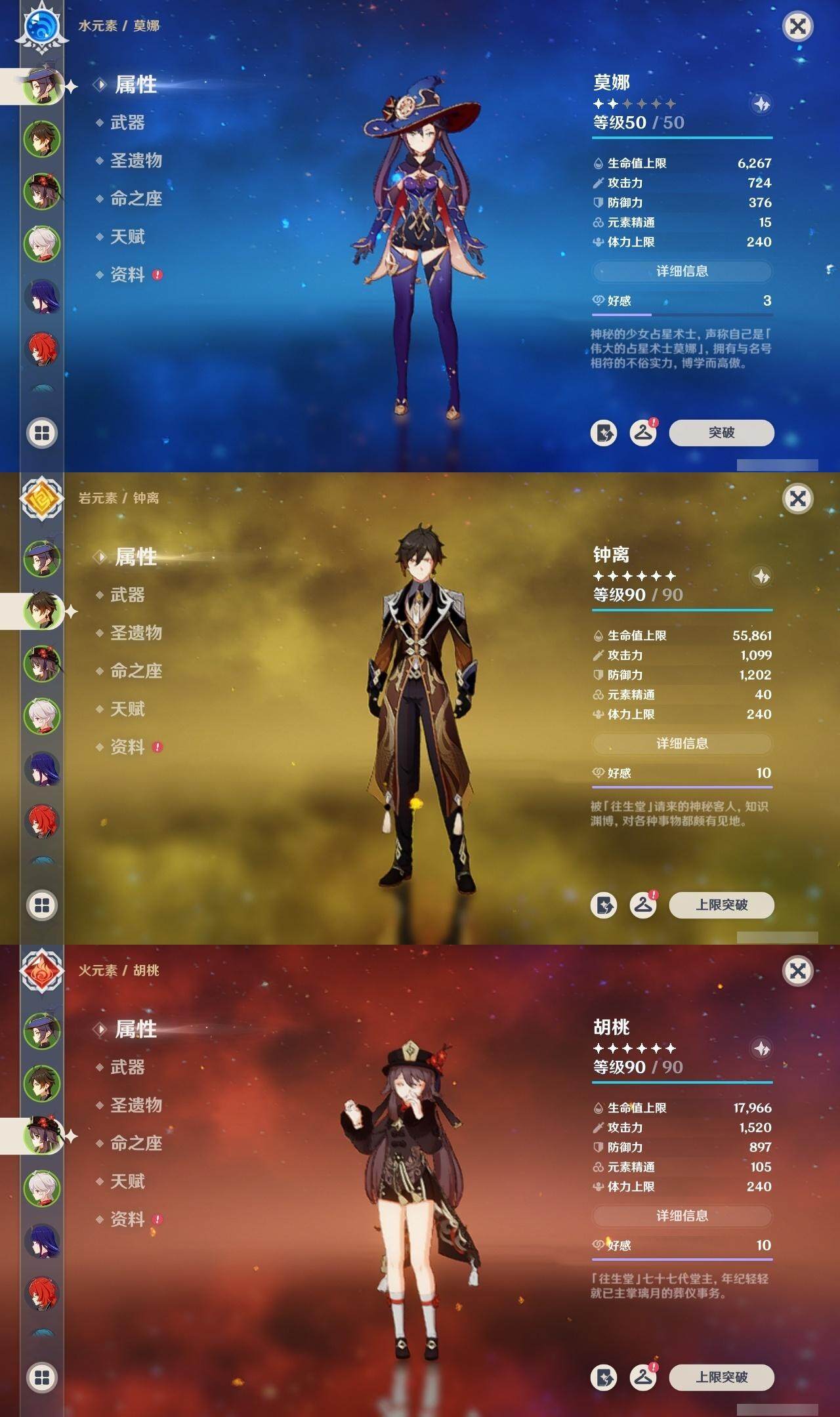 莫娜,钟离,胡桃,枫原万叶,雷电将军,迪卢克