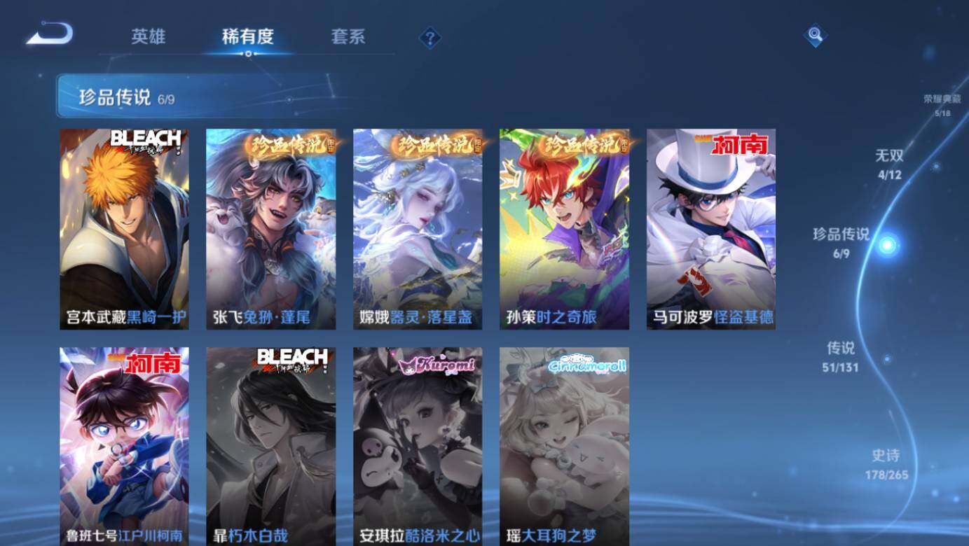 【珍品传说】:马可波罗怪盗基德,鲁班七号江户川柯南,孙策时之奇旅,嫦娥器灵落星盏,张飞兔狲蓬尾,宫本武藏黑崎一护
