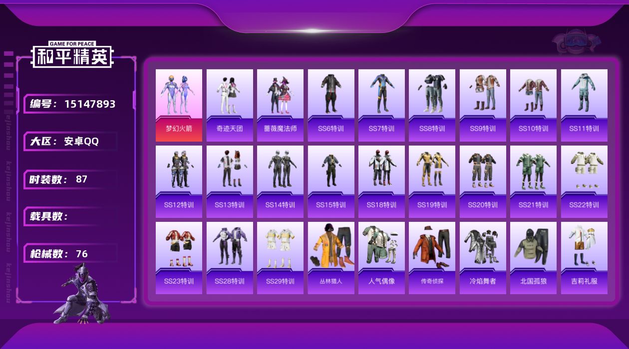 [15147893]【店主推荐捡漏号!可直接换绑】 安卓 手Q-1粉装-2.1w热力值-5王牌印记-87套装-76枪皮【热门品类】:粉装-梦幻火箭【粉色套装】:粉装-梦幻火箭