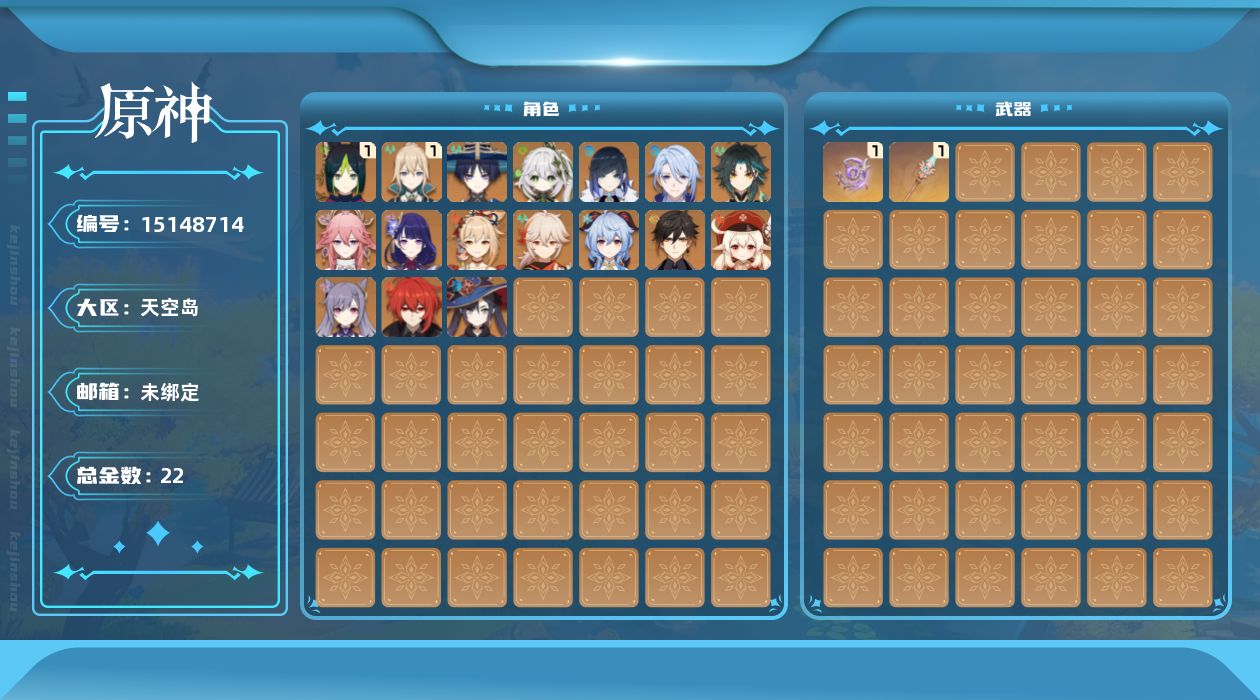 [15148714]56级/22黄/男主/17个五星角色/3个五星武器