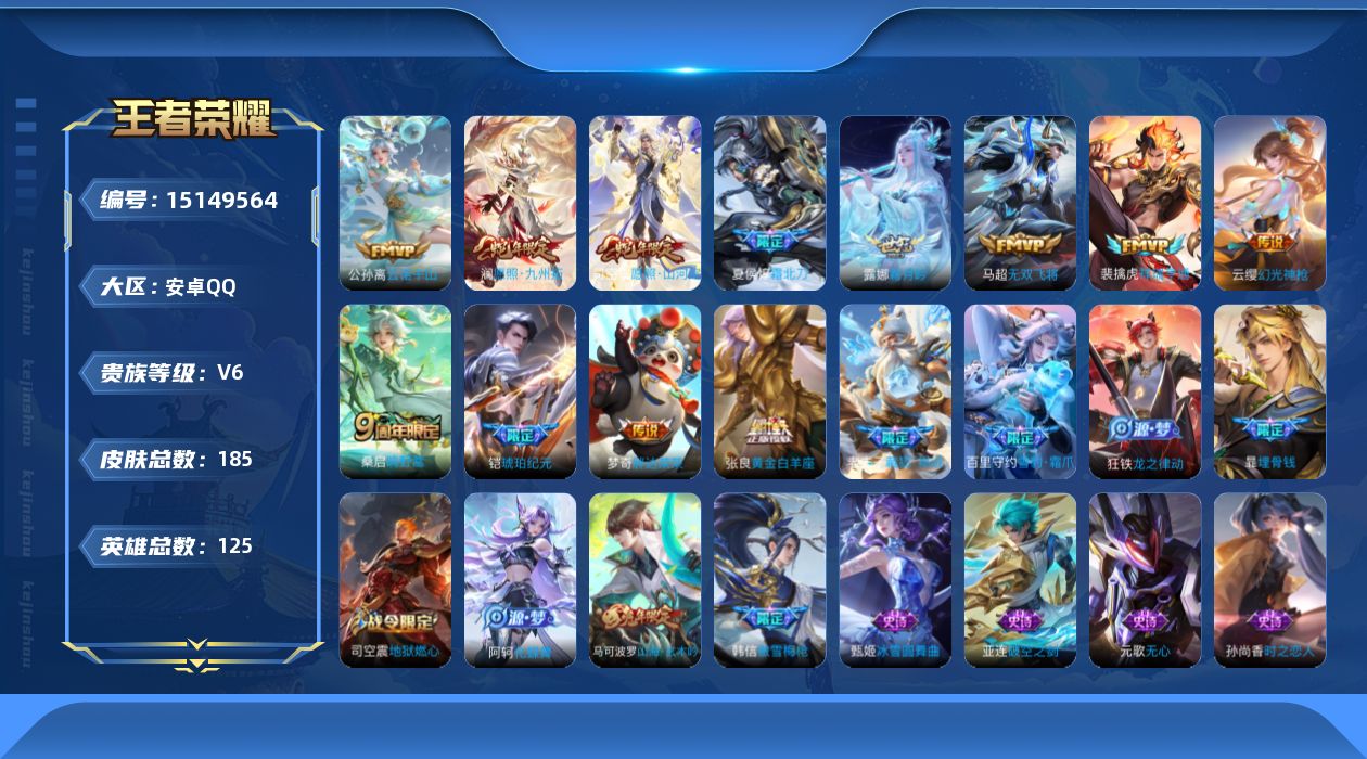 [15149564]可二次【店主推荐捡漏号!可直接换绑】安卓Q-V6-最强王者段位-125英雄-185皮肤-12传说-52史诗