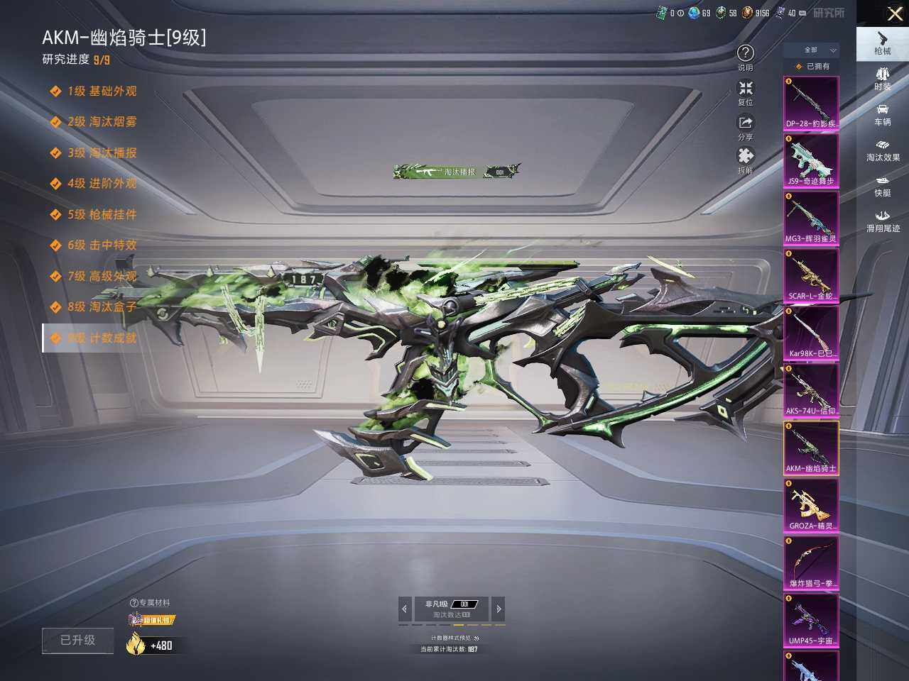 AKM-百万伏特,M762-奇异狩猎者,M762-瑞龙福将,Kar98K-古堡领主,M24-奇异狩猎者,M249-古堡领主