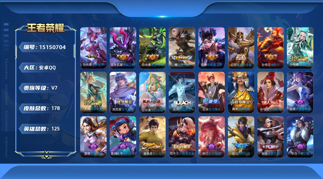 [15150704]【店主推荐捡漏号!可直接换绑】安卓Q-V7-最强王者段位-125英雄-177皮肤-7传说-37史诗