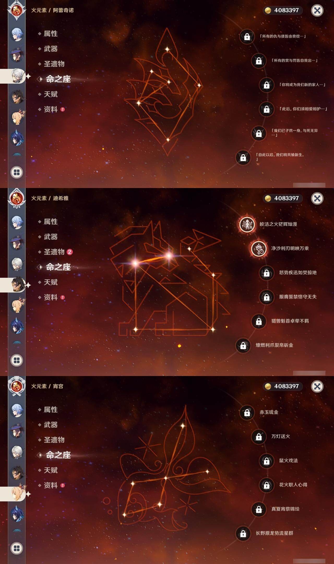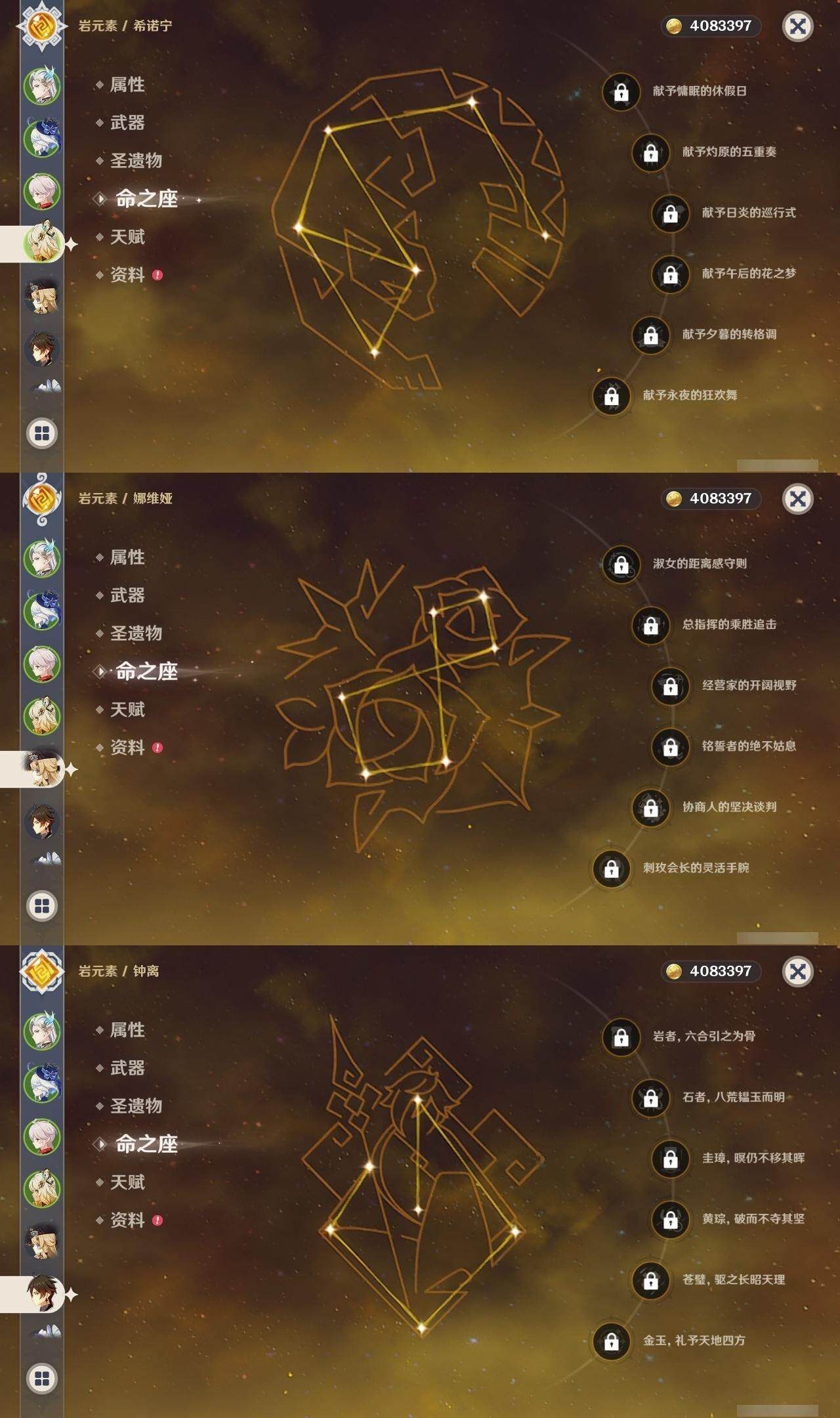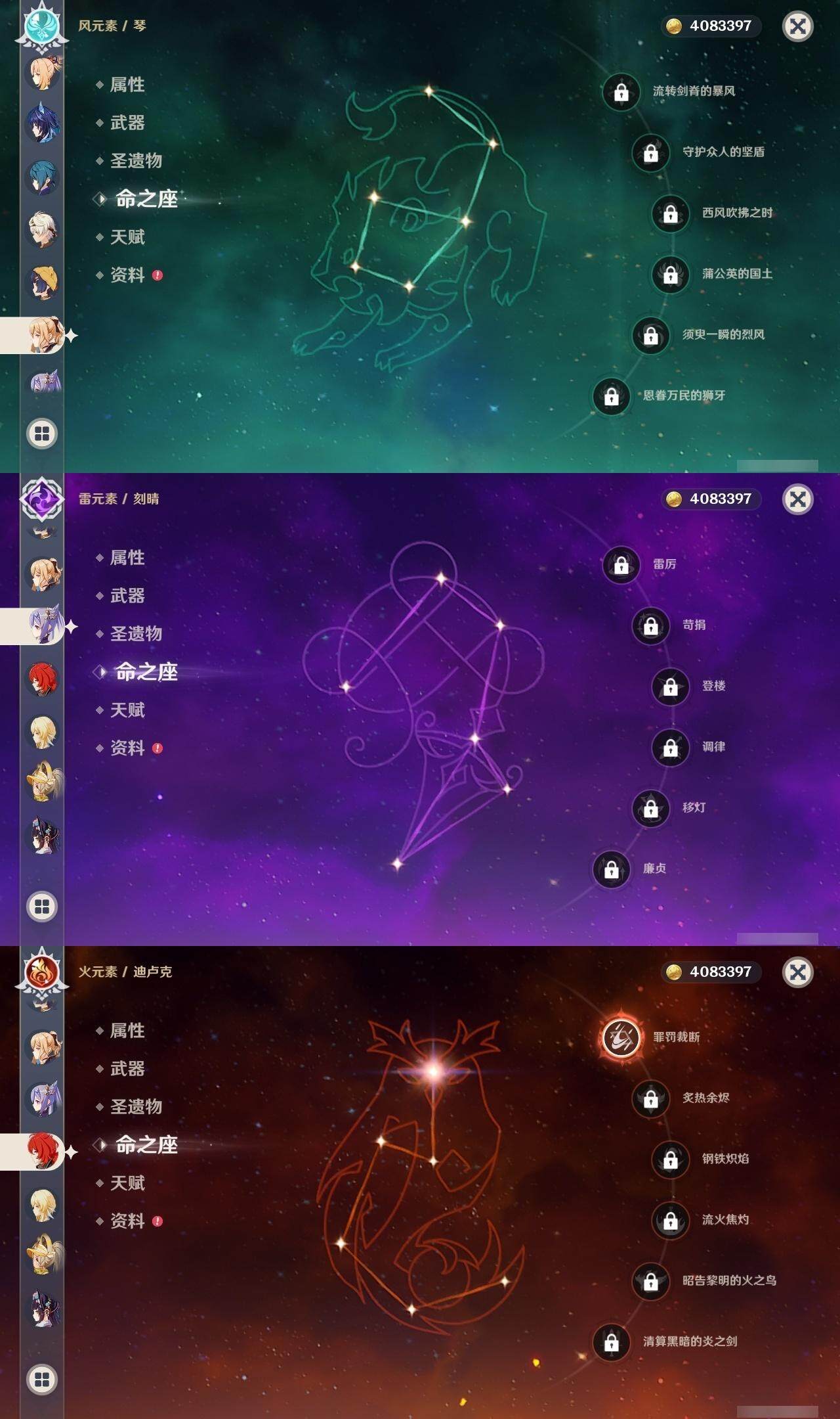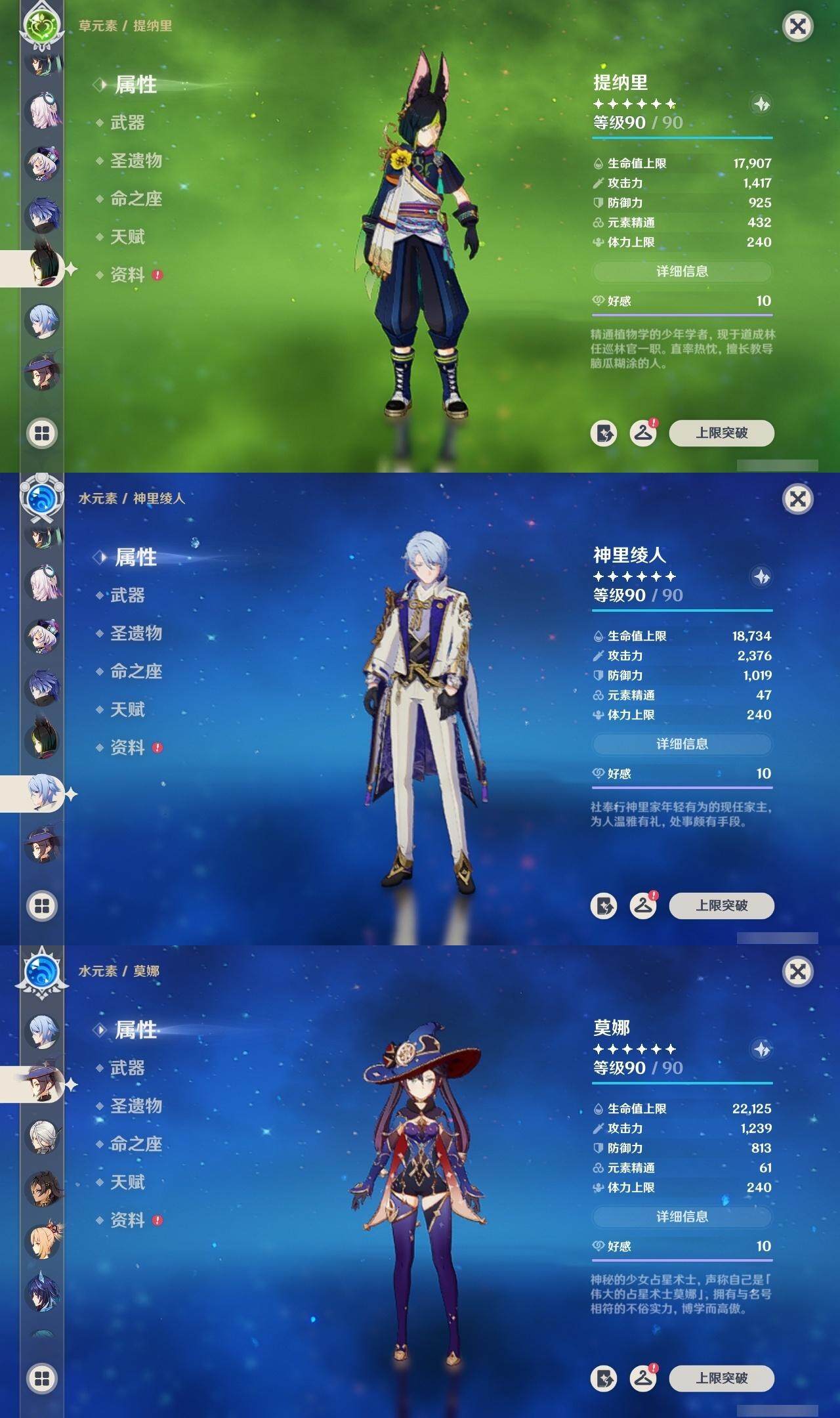 0命阿蕾奇诺,1命闲云,0命娜维娅,0命芙宁娜,1命那维莱特,2命迪希雅,1命提纳里,0命神里绫人,0命枫原万叶,0命钟离,0命宵宫,0命刻晴,0命七七,0命琴,3命莫娜,1命迪卢克,0命希诺宁,0命恰斯卡,0命茜特菈莉,0命梦见月瑞希,0命菲林斯,精1鹤鸣余音,精1万世流涌大典,精1赤沙之杖,精1波乱月白经津,精1贯虹之槊,精1阿莫斯之弓,精1天空之刃,精1天空之傲,精1星鹫赤羽