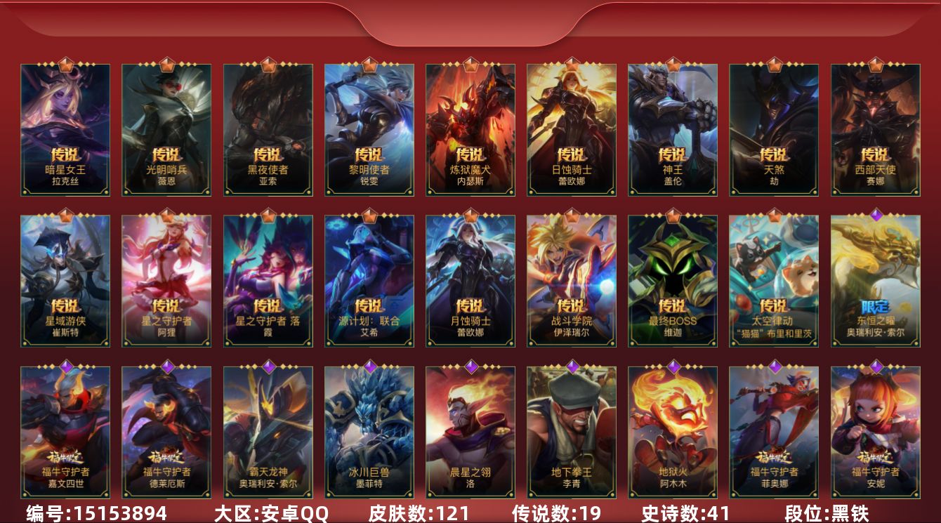 [15153894]暑期末清货/特价急出/永久包赔/商品详情看图 121皮肤/19传说/41史诗/华贵铂金