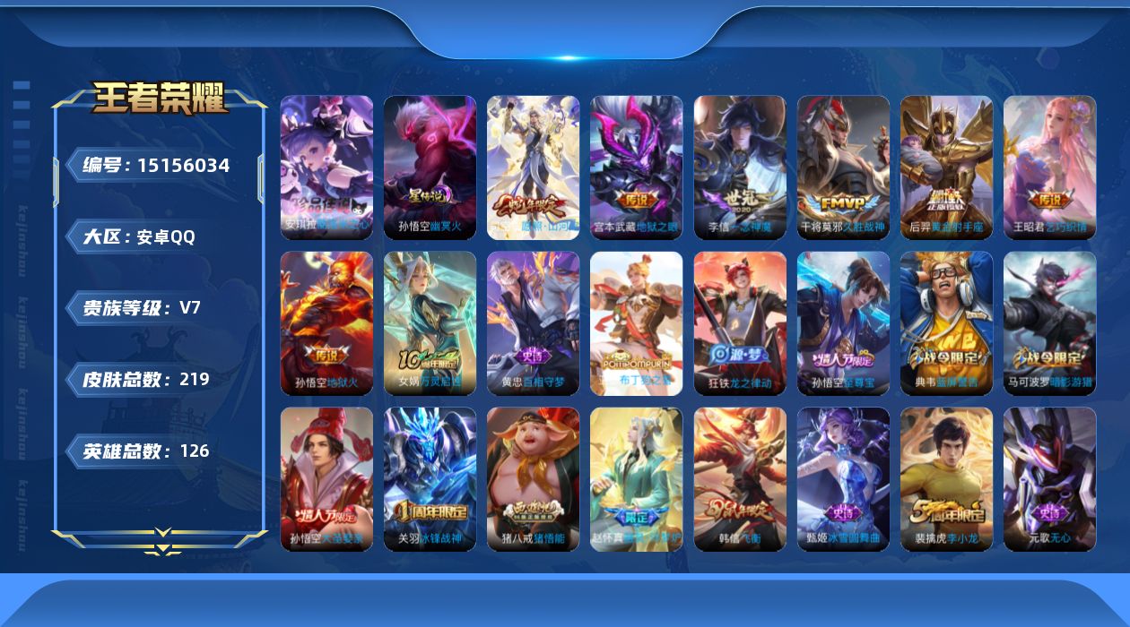 [15156034]【店主推荐捡漏号!可直接换绑】安卓Q-V7-最强王者段位-126英雄-219皮肤-1珍品传说-7传说-52史诗