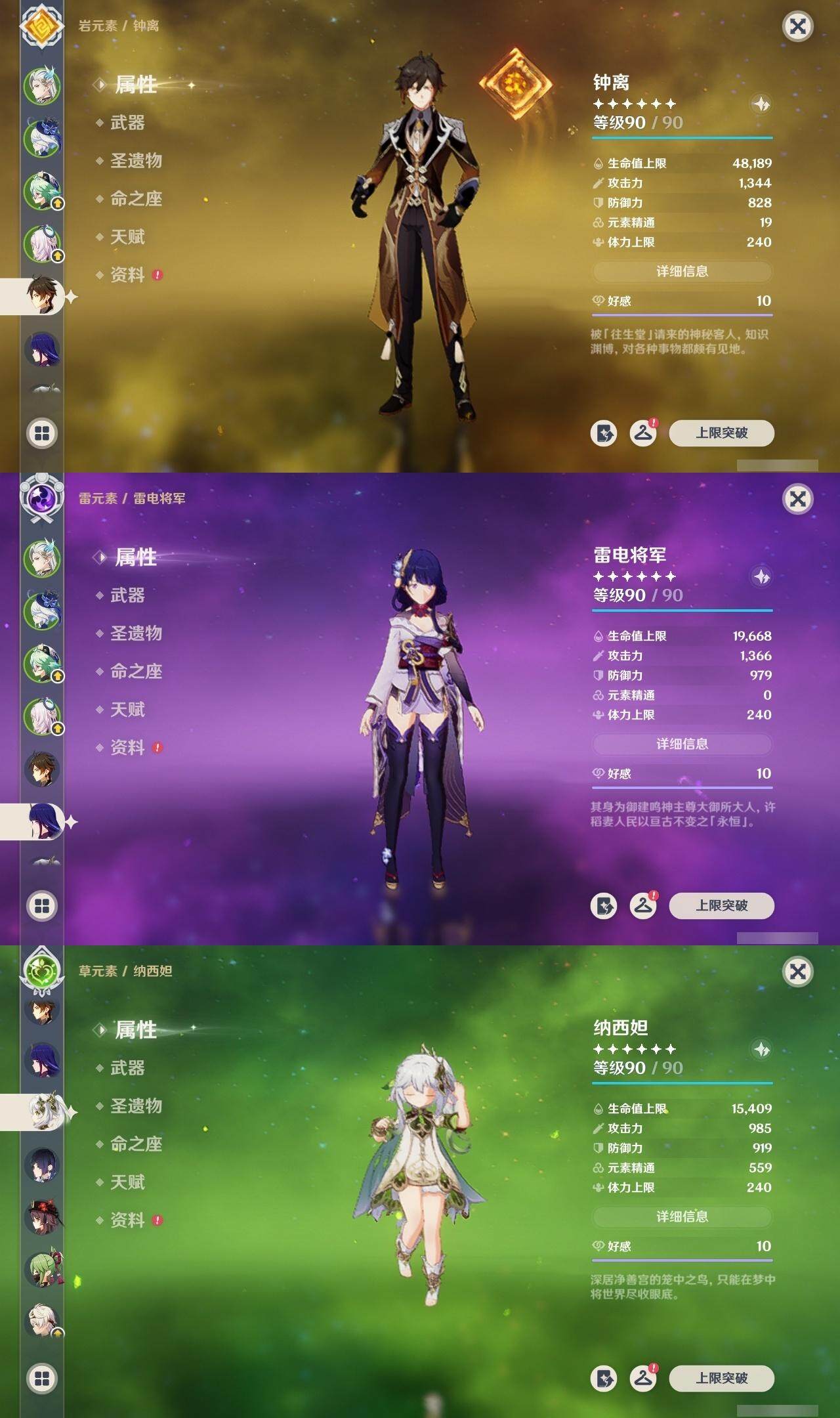 钟离,雷电将军,胡桃,刻晴,莫娜,琴,七七