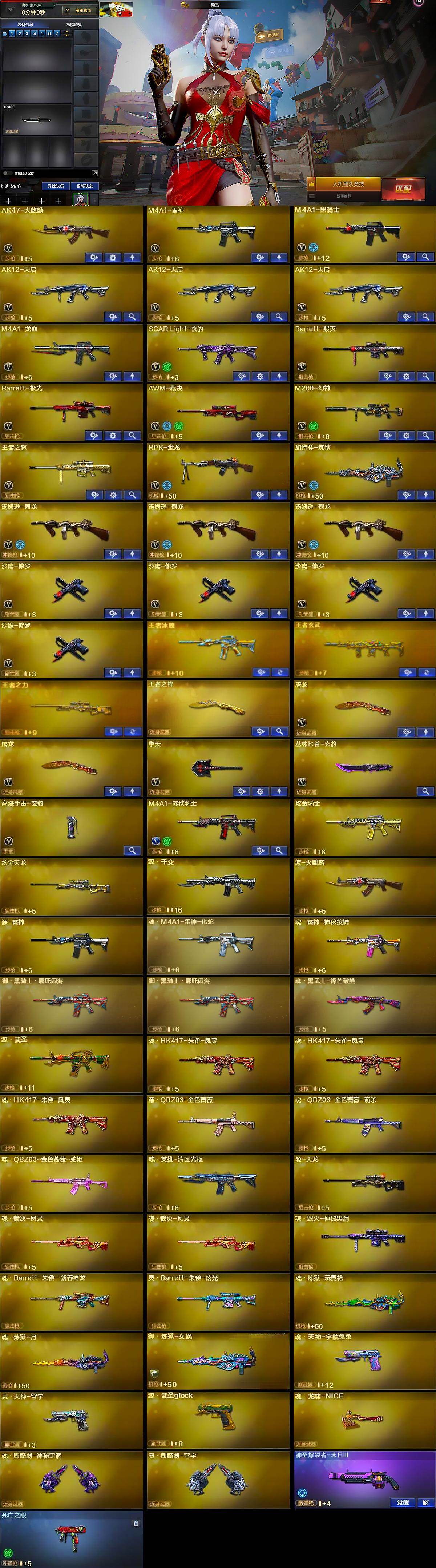 【热门武器】:M200-幻神,死亡之眼,M4A1-黑骑士,汤姆逊-烈龙*3,RPK-盘龙,加特林-炼狱,沙鹰-修罗*4