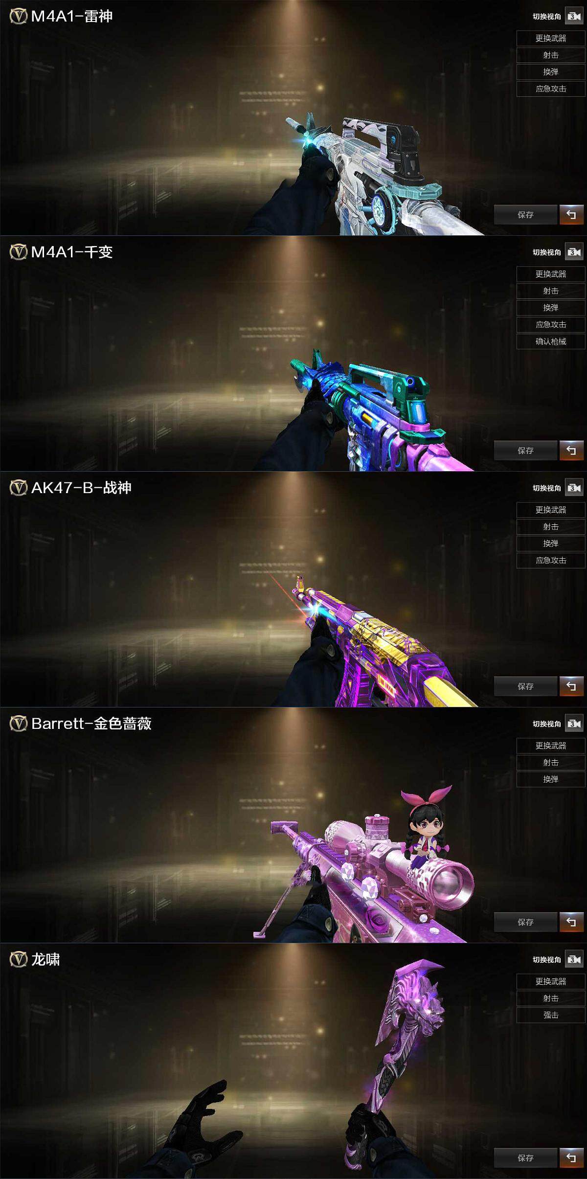 【热门武器】:金色蔷薇-古蛇迷踪,修罗-古蛇迷踪,M200-竞技荣光,白虎-电玩蓝兔,毒蜂,汤姆逊-烈龙*2,RPK-盘龙*2,裁决-雪莉杨