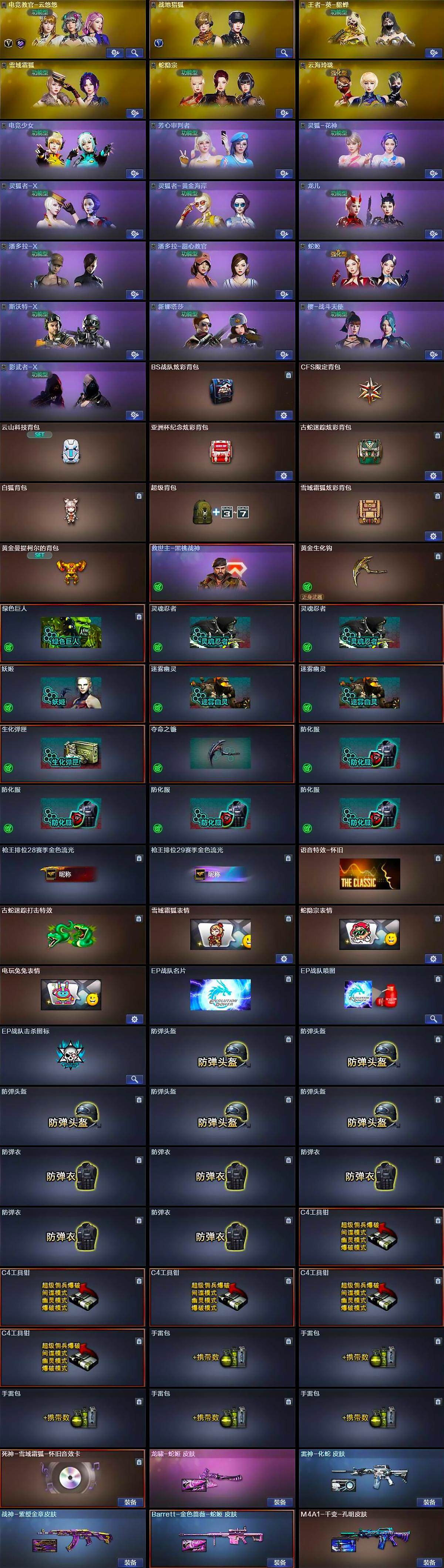 【皮肤】:雷神-化蛇 皮肤,M4A1-千变-孔明皮肤,战神-紫绶金章皮肤,AK47-B-常胜将军-刘备,Barrett-金色蔷薇-蛇姬 皮肤,龙啸-蛇姬 皮肤