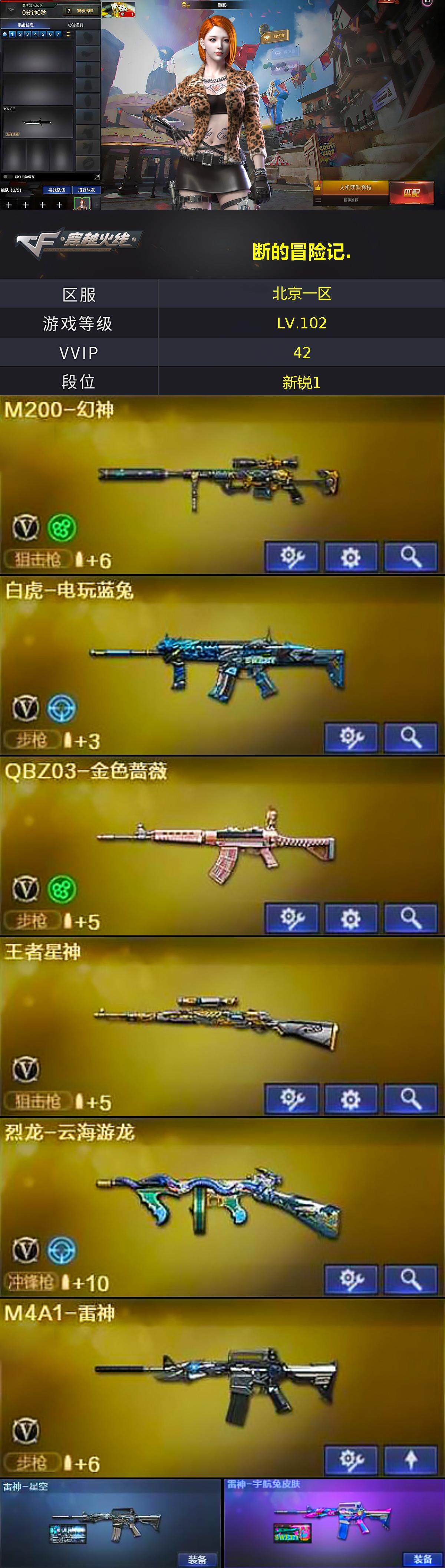 【热门武器】:QBZ03-金色蔷薇,M200-幻神,死亡之眼*2,白虎-电玩蓝兔,M4A1-黑骑士,沙鹰-修罗*2