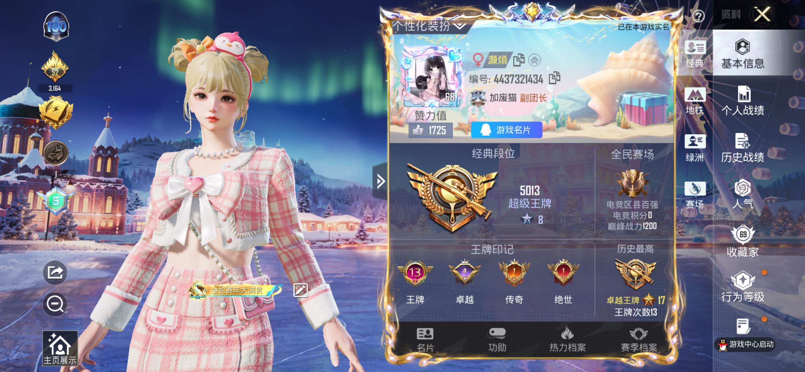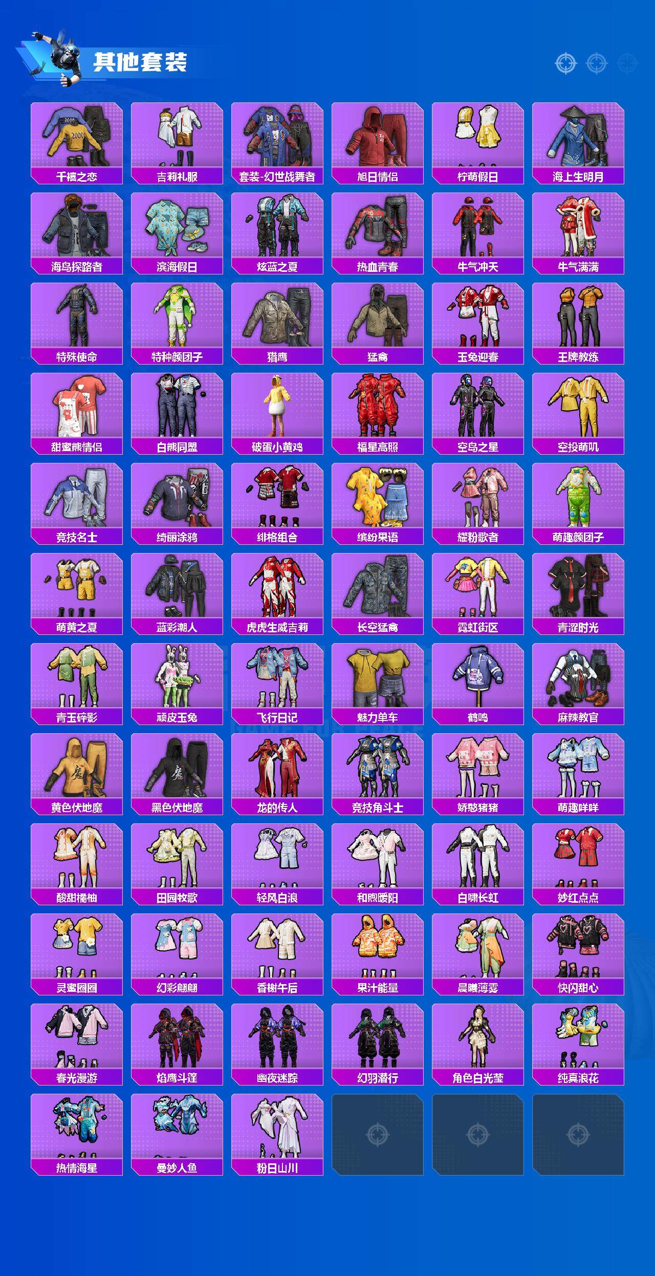 - [15395353]捡漏海外不弹!转不了区!巡查员上衣!11粉装-6特效枪-2载具-2粉色飞行器-71333热力值-15王牌印记-174套装-191枪皮 【热门品类】:绝对防御上衣,套装-小丑鱼,套装-奇异狩猎者,套装-潮萌小黄鸭,套装-浪漫波比 【粉色套装】:粉装-深渊皇后,粉装-天使彩虹糖,粉装-华贵君王,粉装-极致幻想,粉装-幻彩马卡龙,粉装-黄蜂伯爵,粉装-苍蓝魅影,粉装-翡翠骑士,粉装-绚金战神,粉装-香水柠檬,角色-洛天依 【粉色枪皮等级】:AKM-炫紫旋律(六级),M416-心之恋语(五级),M762-激战未来(六级),Kar98K-巳巳如意(一级),Mini14-荧光虫舞(四级),MG3-洛神天依(五级) 【粉色载具】:特斯拉Model 3(珍珠白),兰博基尼Estoque(银翼灰) 【粉色枪皮】:AKM-炫紫旋律,M416-心之恋语,M762-激战未来,Kar98K-巳巳如意,Mini14-荧光虫舞,MG3-洛神天依 【粉色飞行器】:精灵迷巫飞行器,齐天大圣飞行器 【粉色降落伞】:雪国幻梦降落伞,春暖花开降落伞,神秘黑猫降落伞,古堡领主降落伞,荧光虫舞降落伞,香水柠檬降落伞,王牌四分卫降落伞,怪笑疯兔降落伞,齐天大圣降落伞,洛神天依降落伞,风花雪月降落伞 【稀有套装】:套装-巳巳如意 【稀有枪皮】:AKM-夜灯,AKM-彩虹符号,AKM-星之彼岸,AKM-春暖花开,AKM-灼热熔岩,AKM-萌趣颜团子,AKM-虎虎生威,M16A4-夜灯,M16A4-幻世战舞者,M16A4-机械英豪,SCAR-L-暗夜玫瑰,SCAR-L-炫彩节奏,SCAR-L-玉兔迎春,M416-仓鼠灰灰,M416-夜灯,M416-蓝色火焰,GROZA-异彩先驱,GROZA-彩虹符号,GROZA-春暖花开,GROZA-梨园星光,GROZA-治愈之星,GROZA-蓝莓炮弹,GROZA-马卡龙,GROZA-黑色刀锋,AUG-凝视深渊,AUG-天降萌叽,AUG-耀粉歌者,AUG-青春冒险家,QBZ-原初圣火,QBZ-彩虹符号,QBZ-洛神天依,QBZ-潮汐统领,QBZ-电玩视界,QBZ-神秘黑猫,QBZ-赛罗,M762-奇异狩猎者,M762-拳皇97,M762-深海曼妙,M762-牛气冲天,M762-瑞龙福将,M762-镭射皇者,Mk47-洛神天依,Mk47-青春冒险家,G36C-不夜海上花,G36C-时