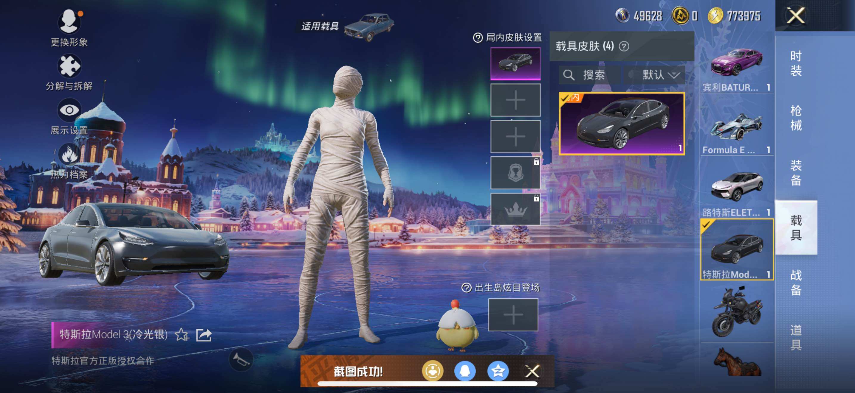 特斯拉Model_3(冷光银),路特斯ELETRE(花绽灰),宾利BATUR(极速紫),Formula_E_Gen2(巅峰兰)