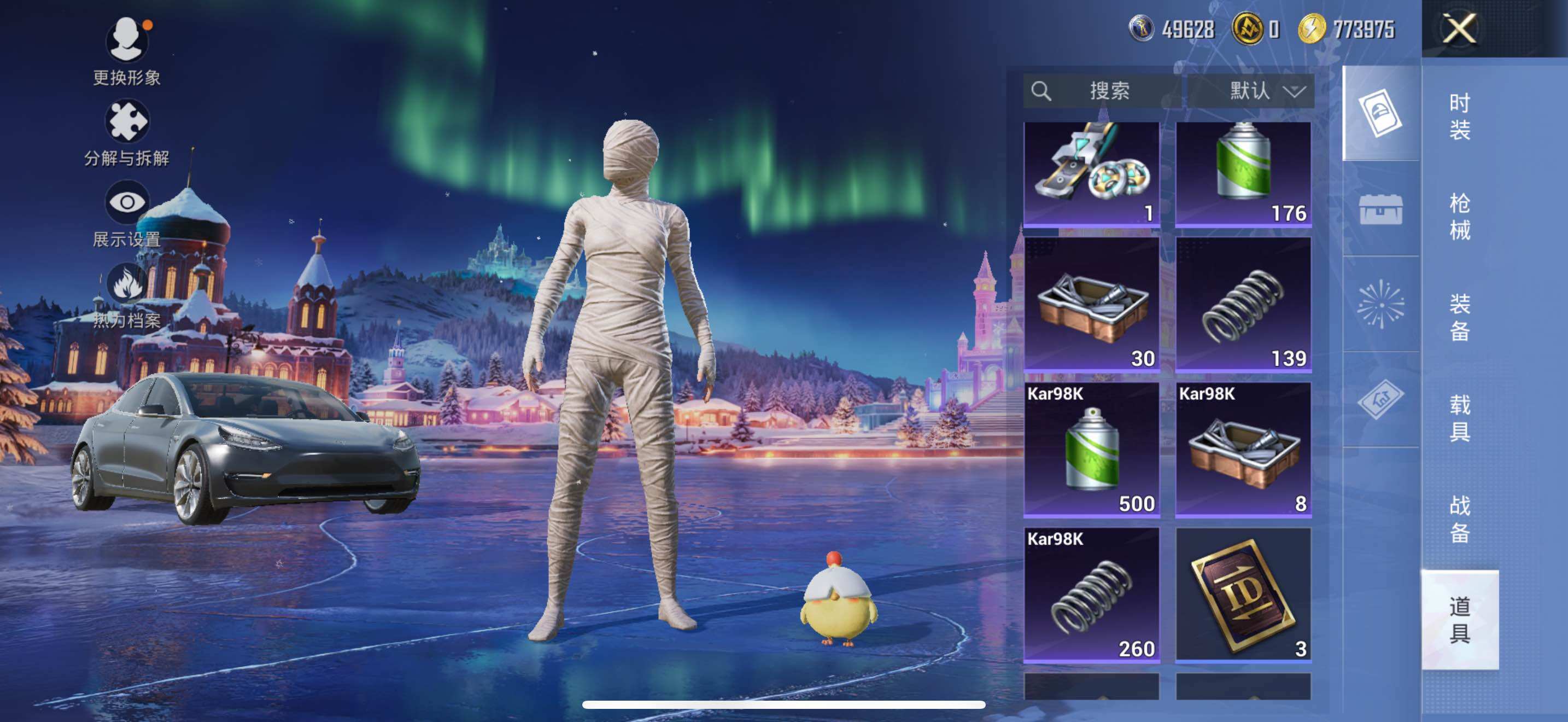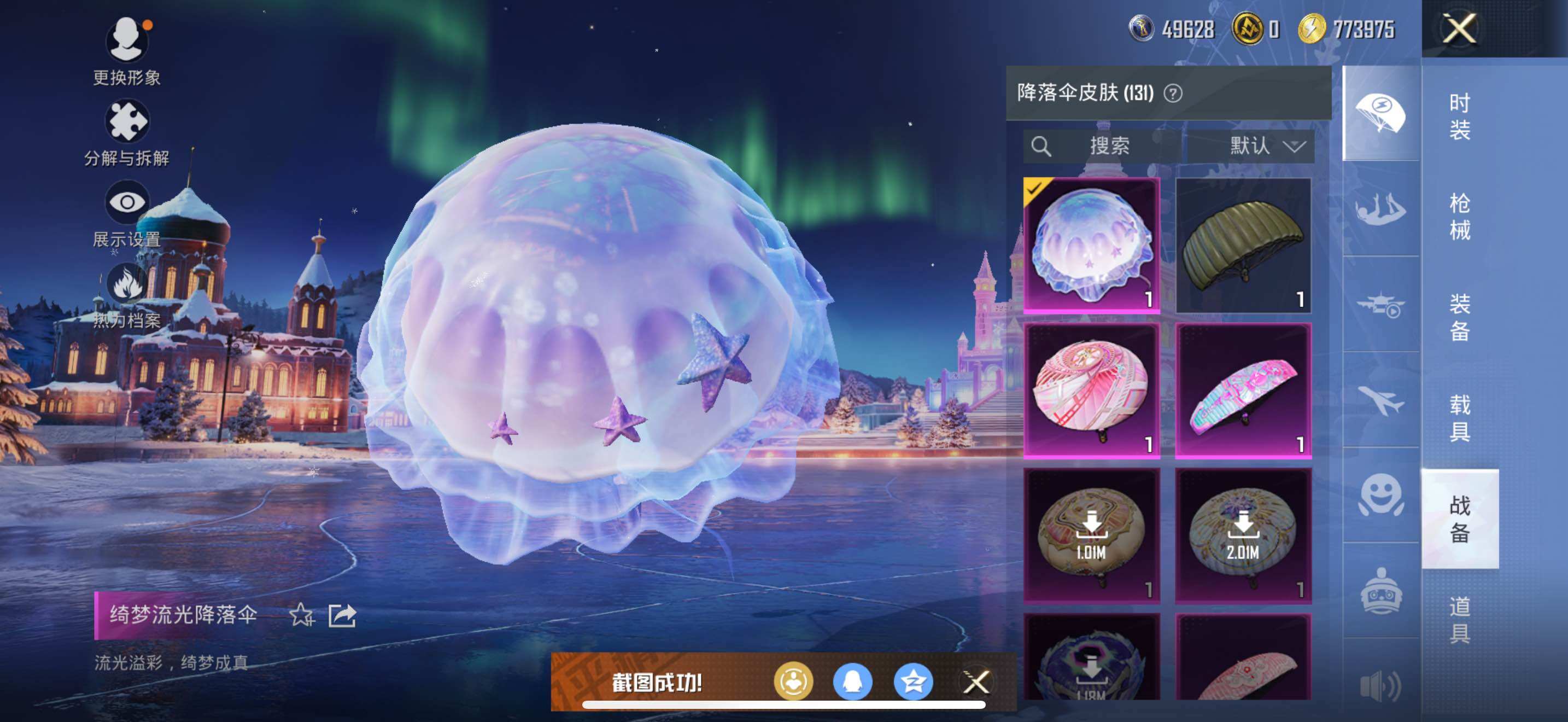 AKM-梦之光华,SCAR-L-机甲封神,M416-心之恋语,GROZA-圣辉之星,Kar98K-巳巳如意,MK12-雪月幻音,破片手榴弹-粉粉猫爪