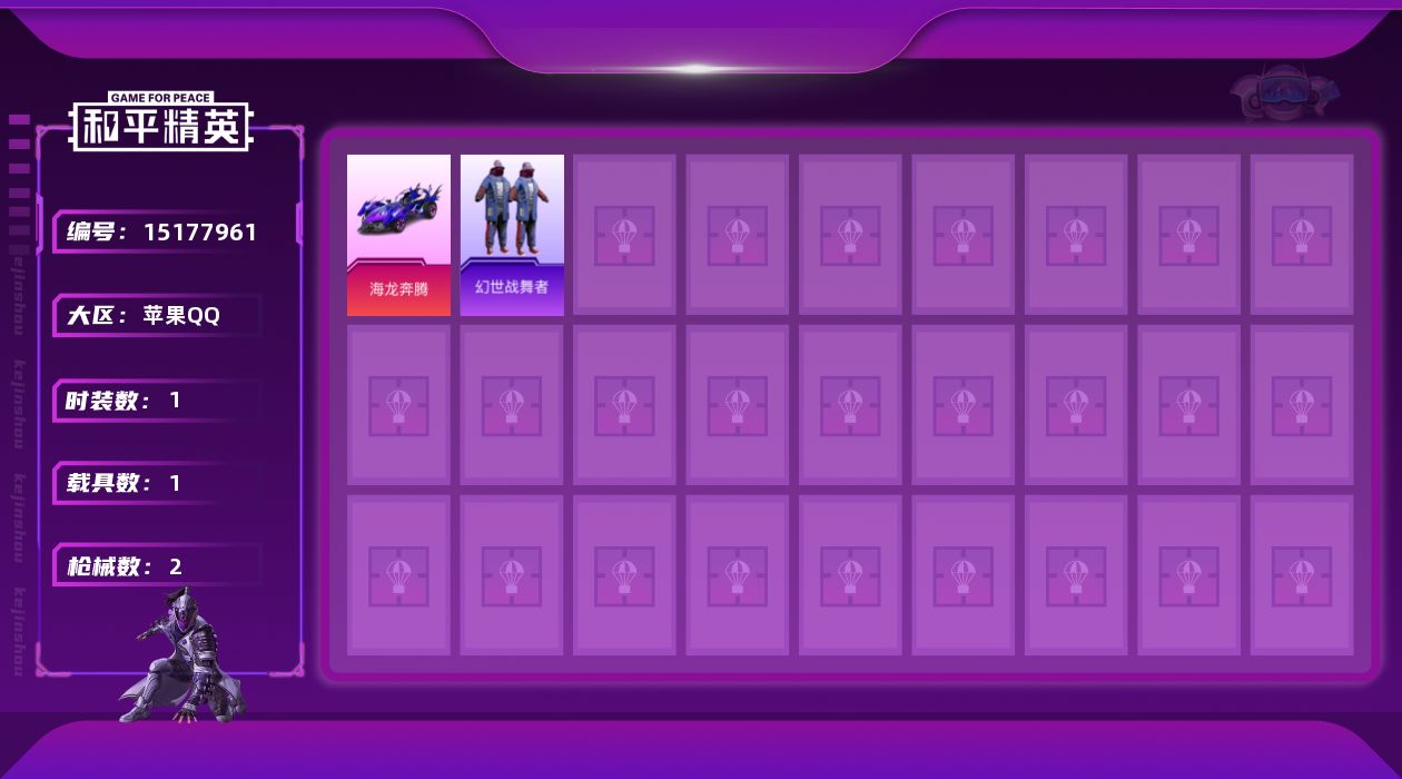 - PX_2009629-实名: 可修改 时装数: 181 载具数: 2 枪械数: 226 战备数: 181 热门装扮: 深海曼妙,鹰眼刺客,甜蜜誓约,都市猎人,极致幻想,新星烈龙,童趣迷兔,馨动时刻,仓鼠灰灰,激萌罗小黑,胖达圆圆,青空秋雨,千金淑猫,女娲灵识,桃粉嫣然,凤凰座 一辉 载具: 阿斯顿·马丁DBS(红),仰望U9(赤霞丹朱) 稀有枪皮: M762甜蜜誓约,M416心之恋语,M249彩虹