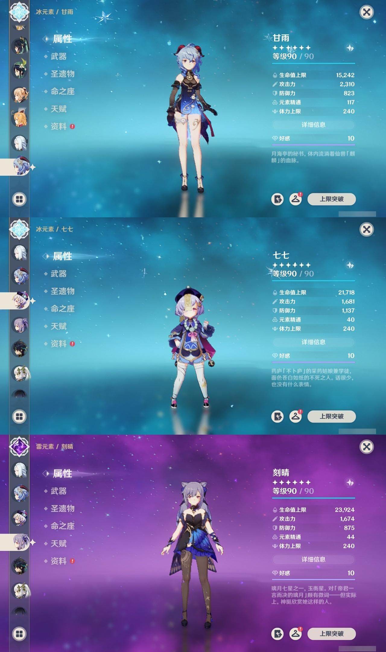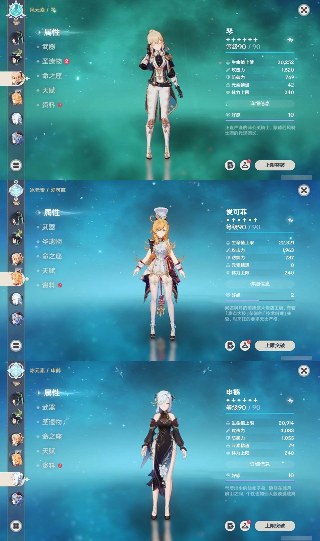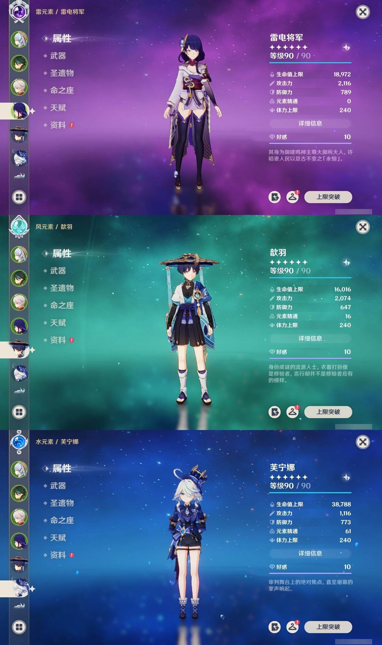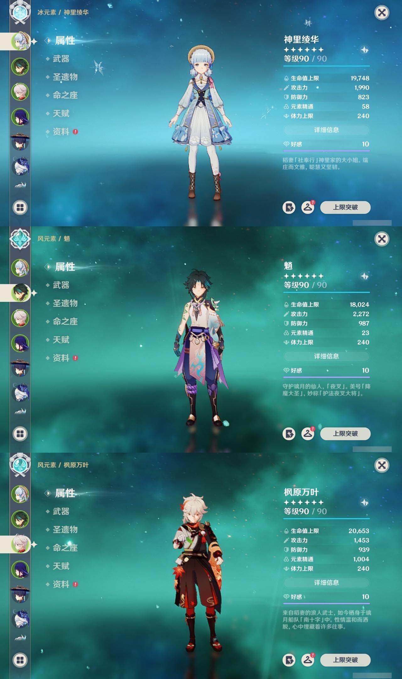 神里凌华,魈,枫原万叶,雷电将军,温迪,琴,申鹤,甘雨,七七,刻晴,珊瑚宫心海,莫娜,达达利亚,可莉,迪卢克