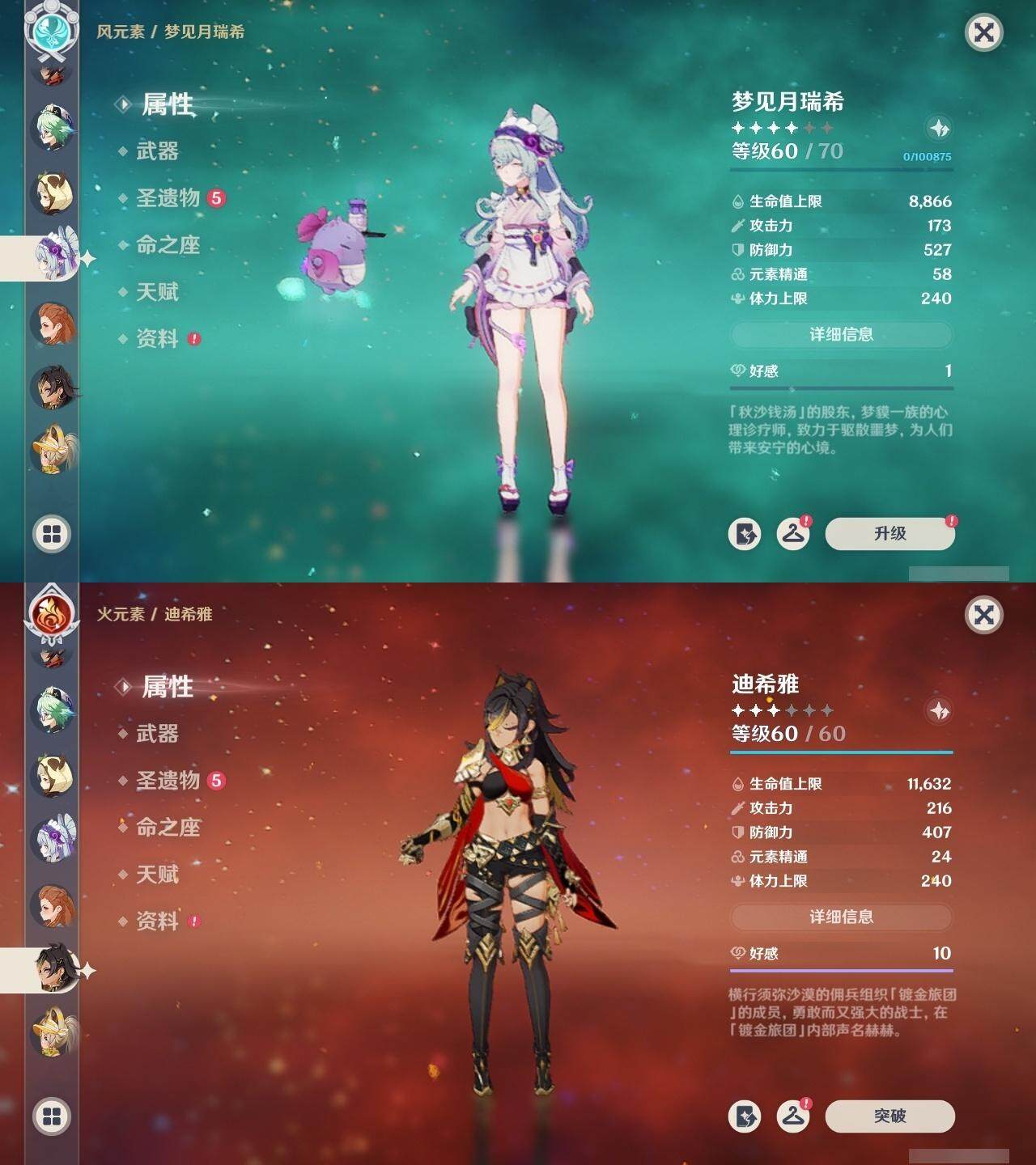 - [15502968]60级/47黄/女主/20个五星角色/10个五星武器 1命阿蕾奇诺,1命娜维娅,1命芙宁娜,1命那维莱特,满命迪希雅,1命流浪者,0命提纳里,2命雷电将军,0命枫原万叶,1命刻晴,0命七七,0命琴,1命莫娜,2命迪卢克,0命希诺宁,0命恰斯卡,0命玛薇卡,0命茜特菈莉,0命梦见月瑞希,0命丝柯克,精1白雨心弦,精1万世流涌大典,精1若水,精1息灾,精1薙草之稻光,精1四风原典,精1风鹰剑,精1天空之傲,精1苍耀