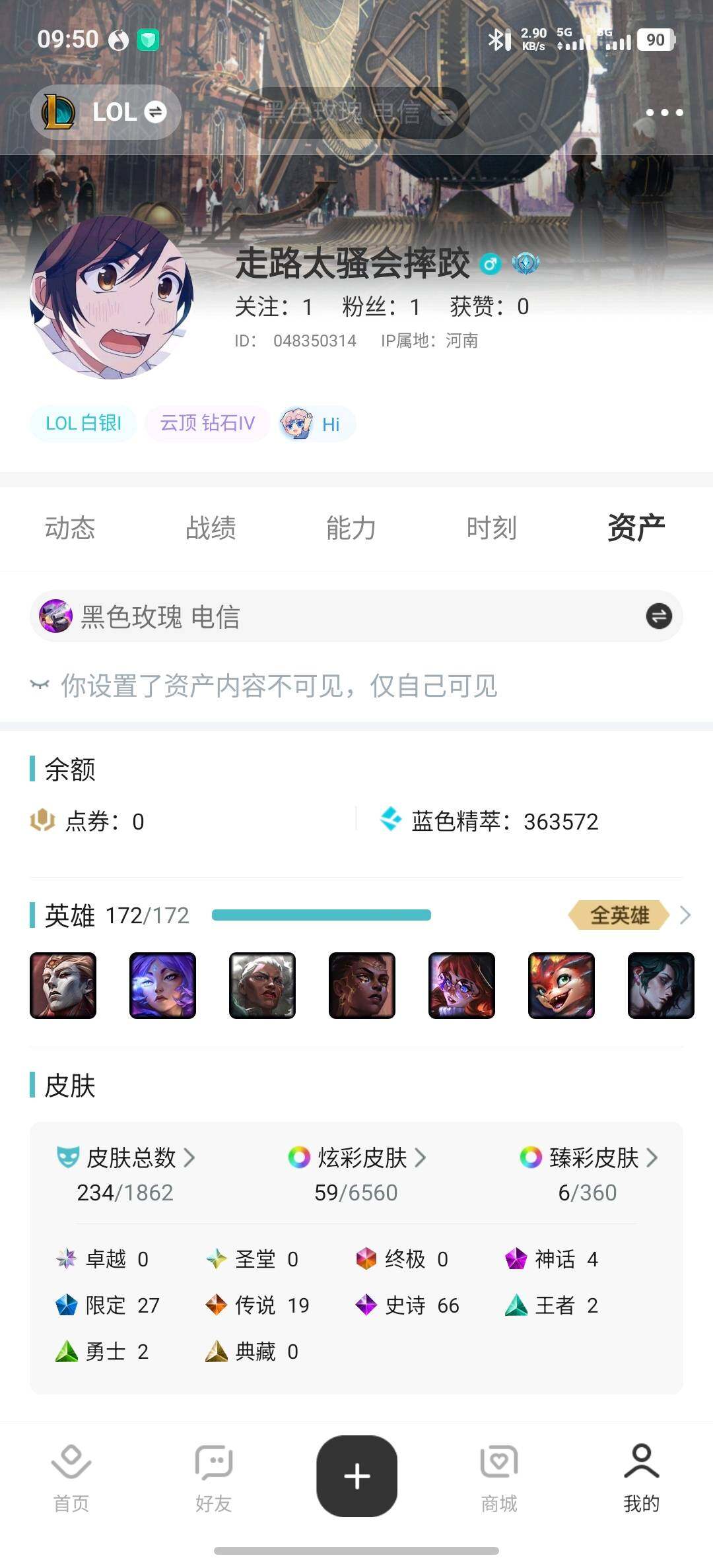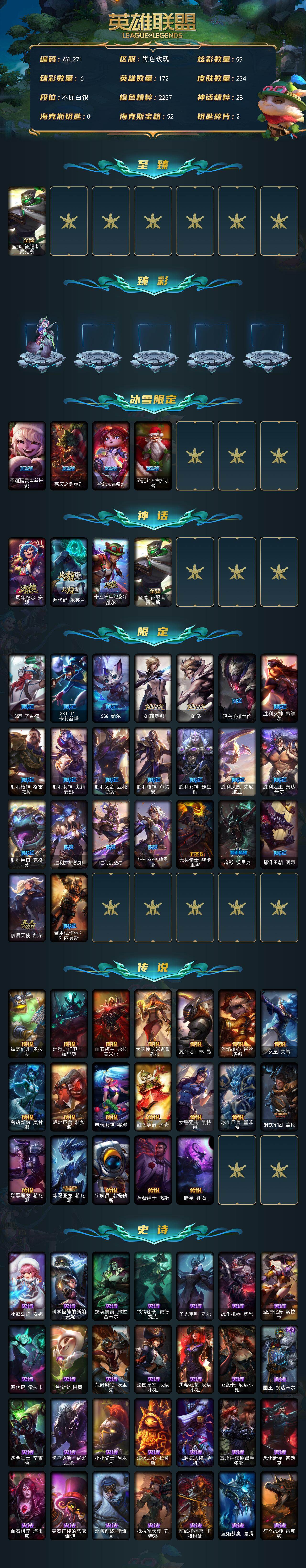 [15179852]【店主推荐捡漏号!可直接换绑】白银段位-172英雄-234皮肤-59炫彩-0终极-4神话-27限定-19传说-66史诗