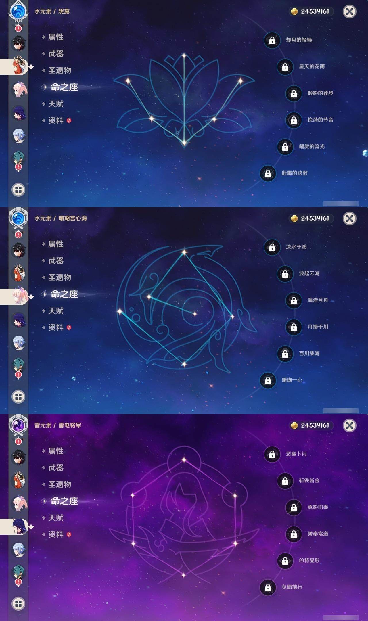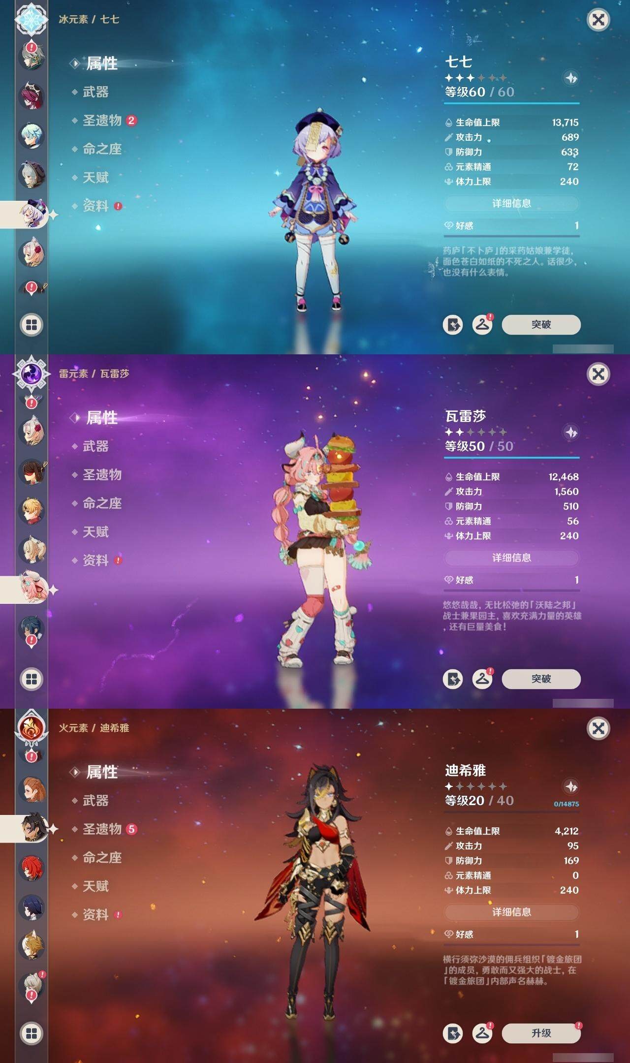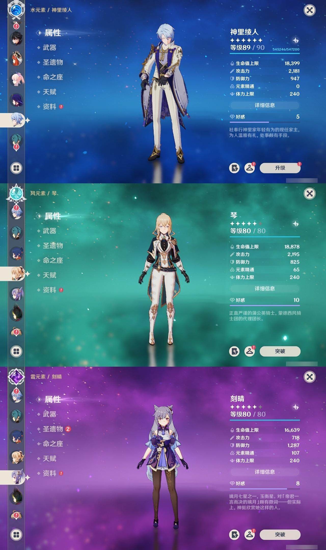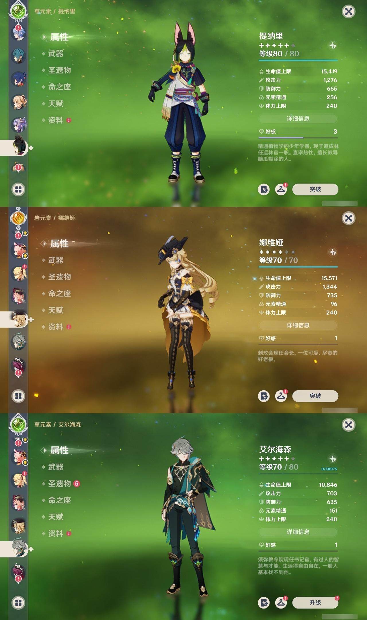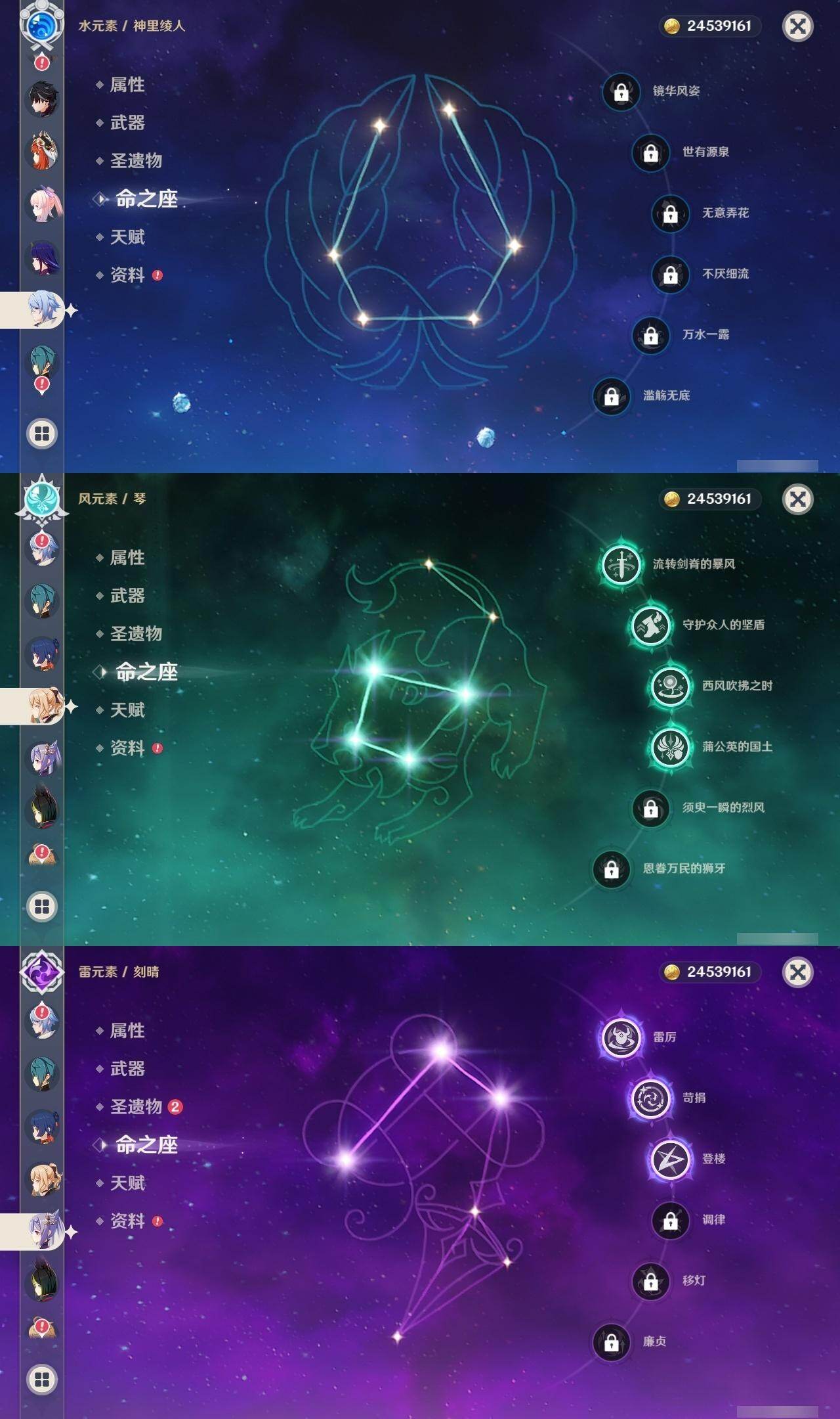 0命希格雯,0命娜维娅,0命莱欧斯利,1命迪希雅,0命艾尔海森,0命纳西妲,0命妮露,2命提纳里,0命神里绫人,0命优菈,0命雷电将军,0命枫原万叶,0命神里绫华,1命钟离,0命胡桃,1命魈,1命达达利亚,0命珊瑚宫心海,3命刻晴,0命七七,4命琴,0命迪卢克,0命瓦雷莎,精1息灾,精1四风原典,精1天空之脊,精1阿莫斯之弓,精1天空之卷