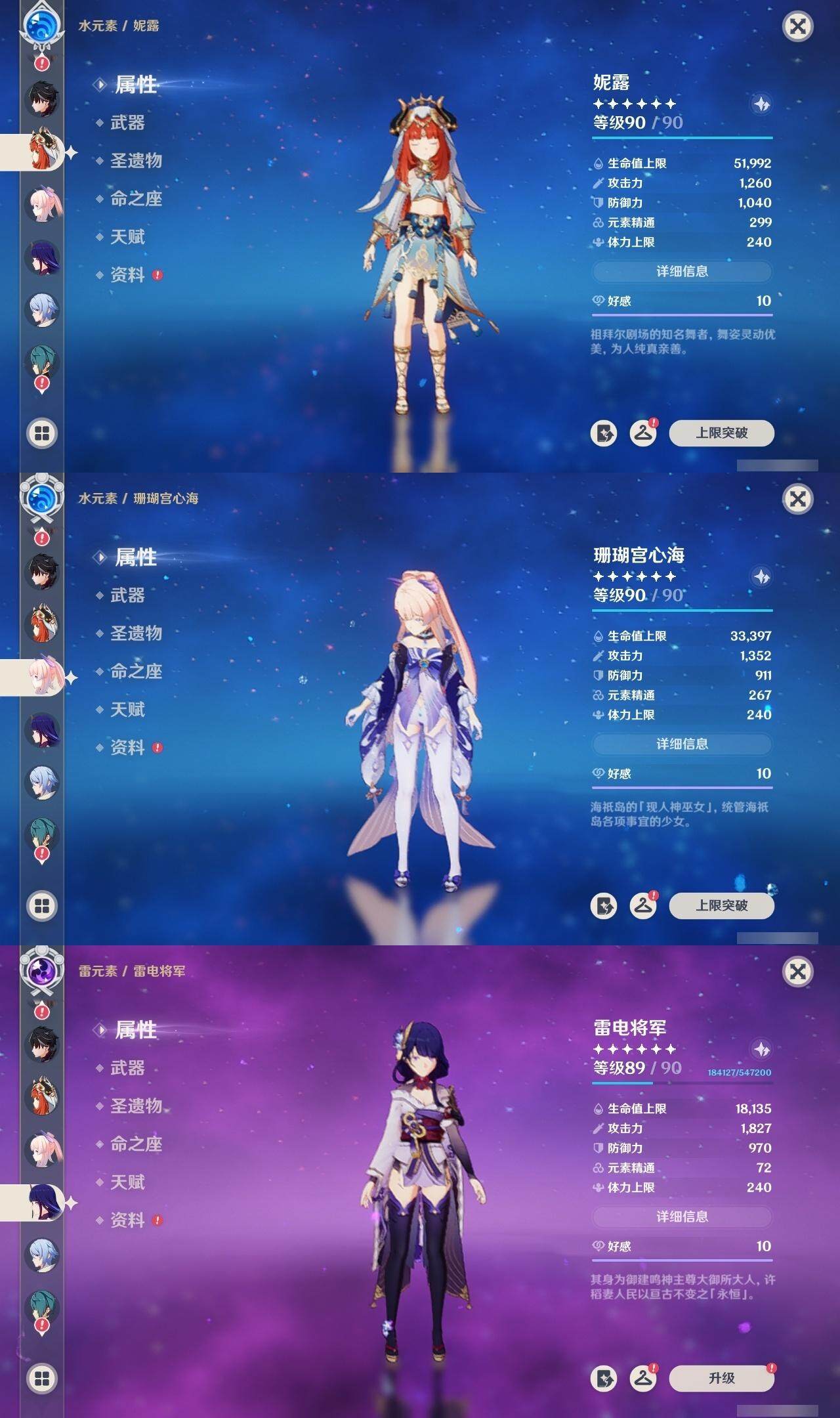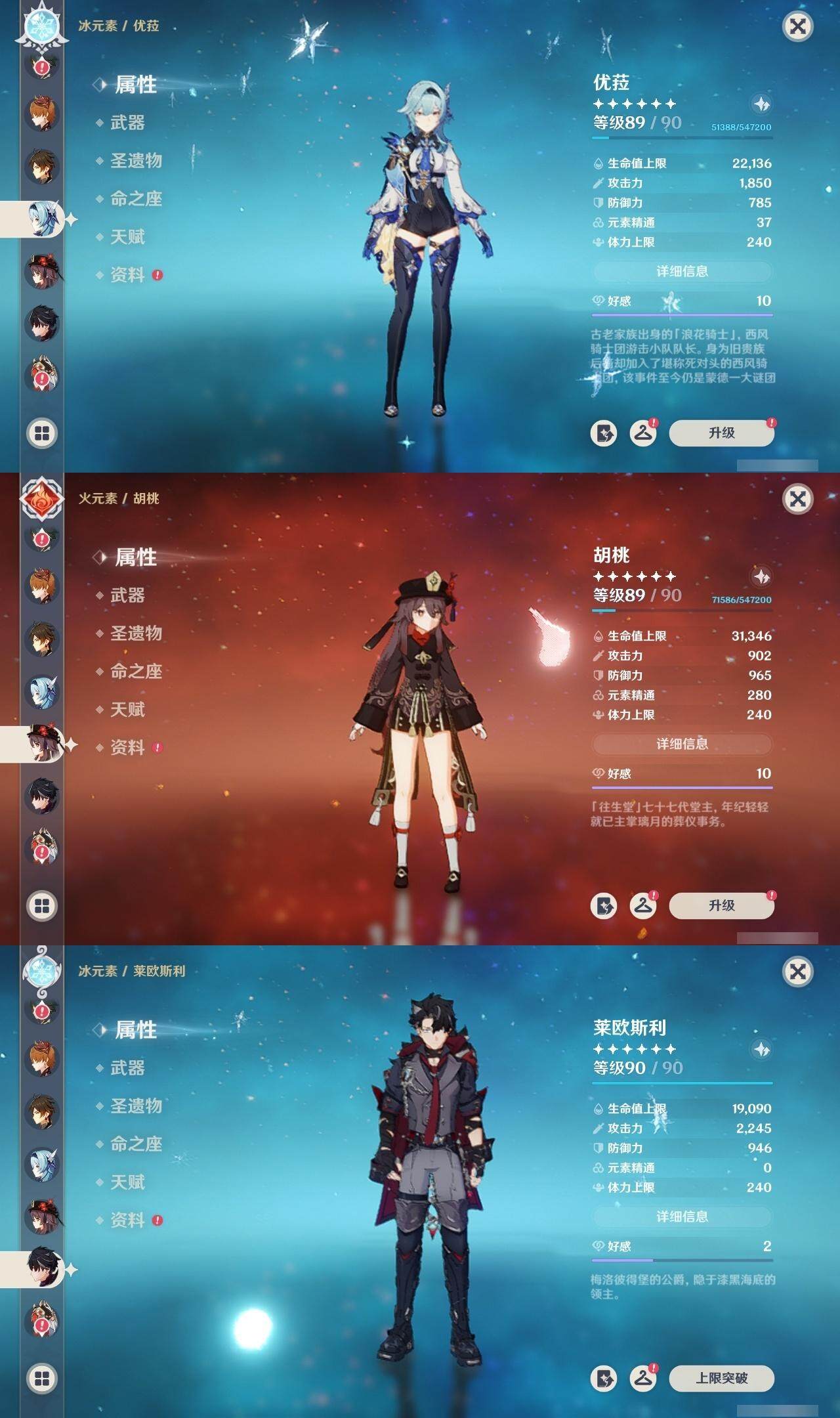 枫原万叶,神里凌华,魈,达达利亚,钟离,优菈,胡桃,珊瑚宫心海,雷电将军,琴,刻晴,七七,迪卢克