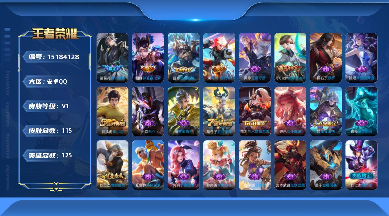 [15184128]【店主推荐捡漏号!可直接换绑】安卓Q-V0-至尊星耀I段位-125英雄-115皮肤-5传说-25史诗