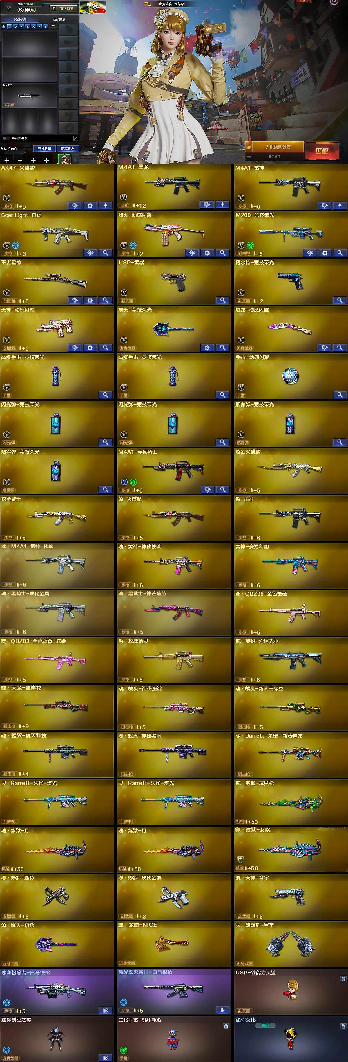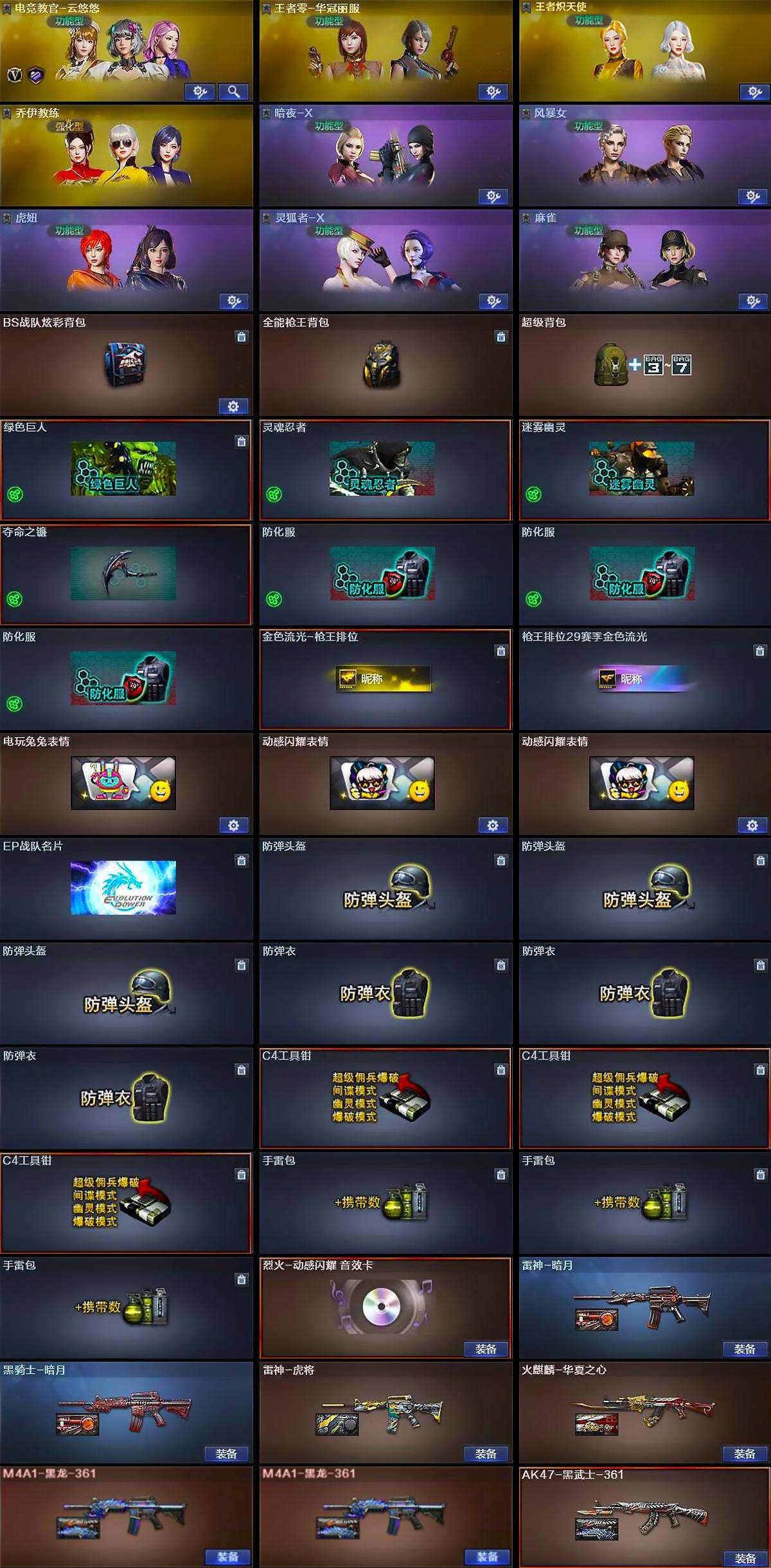 - [13983155]山东一区-36V-1王者-0炫金 【热门武器】:QBZ03-金色蔷薇,Scar Light-白虎,M200-幻神,M4A1-黑骑士,雷神-小红,黄金猫猫手套-白鲨 【音效卡】:M4A1-黑骑士音效卡,AWM-裁决音效卡 【皮肤】:M200-幻神-黄忠皮肤,M200-幻神-荣耀世冠白鲨,雷神-源计划2.0专属 皮肤,火麒麟-战神关羽,火麒麟-平天大圣*2,火麒麟-百城,火麒麟-心动糖果,毁灭-战神张飞,黑骑士-暗月,黑骑士-战神马超,战神-紫绶金章皮肤,修罗-能量核心 【角色】:王者影豹,奇洋探员,暗夜-X,初恋灵狐,电竞少女,芳心审判者,飞虎队-X,嘉年华灵狐,灵狐者-X,斯沃特-X,兔囡囡,樱-战斗天使 【人偶武器】:雷神-小红,AWM-灵狐-15周年嘉年华 【暴走生化】:超级对讲机 【挑战大师】:冰龙粉碎者-白马银枪,激光毁灭者III,神圣爆裂者-末日III 【英雄级武器】:AK47-火麒麟,M4A1-雷神,M4A1-黑骑士,Scar Light-白虎,QBZ03-云龙,黑武士-锦绣游龙,超新星-热带奇洋,QBZ03-金色蔷薇,Barrett-毁灭,AWM-裁决,M200-幻神,COP 357-云龙*3,屠龙,龙啸-热带奇洋,高爆手雷-幻灵,高爆手雷-云龙*7,手雷-热带奇洋,闪光弹-云龙*5,烟雾弹-云龙*6 【道具】:奇洋探员-海龟背包,热带奇洋炫彩背包,超级背包,绿色巨人,灵魂忍者,迷雾幽灵,生化弹匣,夺命之镰,防化服*3,金色流光-枪王排位*2,星辰流光-枪王排位,枪王排位28赛季金色流光,枪王排位29赛季金色流光,语音特效-机器人,热带奇洋表情,EP战队名片,防弹头盔*5,防弹衣*5,C4工具钳*5,手雷包*5 【特殊枪械】:1白虎,1黑骑士
