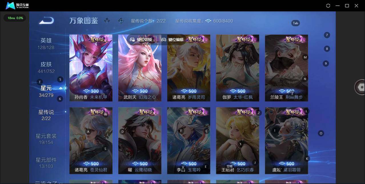 - [12845261]安卓Q-V8-至尊星耀V段位-122英雄-174皮肤-2典藏-0珍品无双-0无双-1珍品传说-13传说-47史诗 【荣耀典藏】:孙悟空全息碎影,李白鸣剑曳影 【珍品传说】:嫦娥器灵落星盏 【传说皮肤】:宫本武藏地狱之眼,孙尚香末日机甲,后羿黄金射手座,梦奇胖达荣荣,花木兰冠军飞将,干将莫邪久胜战神,张良黄金白羊座,伽罗太华,孙悟空零号赤焰,虞姬启明星使,桑启鸣野蒿,云缨幻光神枪,虞姬愿照岁时盈 【限定皮肤】:白起狰,狄仁杰阴阳师,赵云皇家上将,妲己时之彼端,周瑜赤莲之焰,元歌云间偶戏,夏侯惇朔风刀,曹操烛龙,曹操天狼征服者,典韦岱宗,马可波罗暗影游猎,狄仁杰魔术师,狄仁杰万华元夜,项羽海滩派对,老夫子醍醐杖,韩信飞衡,兰陵王驯魔猎人,亚瑟潮玩骑士王,孙悟空零号赤焰,后羿如梦令,李元芳银河之约,虞姬启明星使,钟馗驱傩正仪,蔡文姬繁星吟游,鬼谷子原初探秘者,弈星混沌棋,沈梦溪星空之诺,明世隐疑决卦,米莱狄御霄,伽罗太华,猪八戒西部大镖客,上官婉儿梁祝,嫦娥如梦令,沈梦溪龙舞盛年 【年限皮肤】:伽罗太华,韩信飞衡,典韦岱宗 【赛季限定】:白起狰,夏侯惇朔风刀,曹操烛龙,狄仁杰万华元夜,老夫子醍醐杖,钟馗驱傩正仪,鬼谷子原初探秘者,弈星混沌棋,明世隐疑决卦,米莱狄御霄 【战令限定】:周瑜赤莲之焰,元歌云间偶戏,马可波罗暗影游猎,兰陵王驯魔猎人,亚瑟潮玩骑士王,李元芳银河之约,沈梦溪星空之诺,猪八戒西部大镖客 【史诗皮肤】:露娜紫霞仙子,赵云皇家上将,貂蝉圣诞恋歌,狄仁杰魔术师,廉颇地狱岩魂,宫本武藏鬼剑武藏,孙尚香水果甜心,嬴政摇滚巨星,墨子金属风暴,曹操幽灵船长,李白千年之狐,吕布末日机甲,韩信白龙吟,夏侯惇乘风破浪,兰陵王暗隐猎兽者,诸葛亮黄金分割率,亚瑟心灵战警,雅典娜冰冠公主,安琪拉心灵骇客,百里守约特工魅影,铠曙光守护者,刘禅天才门将,李元芳逐浪之夏,白起星夜王子,阿轲节奏热浪,孙策猫狗日记,伽罗箭羽风息,狄仁杰鹰眼统帅,公孙离无限星赏官,兰陵王驯魔猎人,上官婉儿梁祝,曹操天狼征服者,蔡文姬繁星吟游,李元芳银河之约,娜可露露晚萤,韩信飞衡,典韦岱宗,妲己时之彼端,嫦娥如梦令,后羿如梦令,马可波罗暗影游猎,元歌云间偶戏,亚连破空之剑,孙膑茶境仙,赵怀真器灵浮梦炉,狂铁龙之律动,后羿石田雨龙 【其他皮肤】:项羽海滩派对,韩信教廷特使,韩信街头霸王,露娜哥特玫瑰,赵云