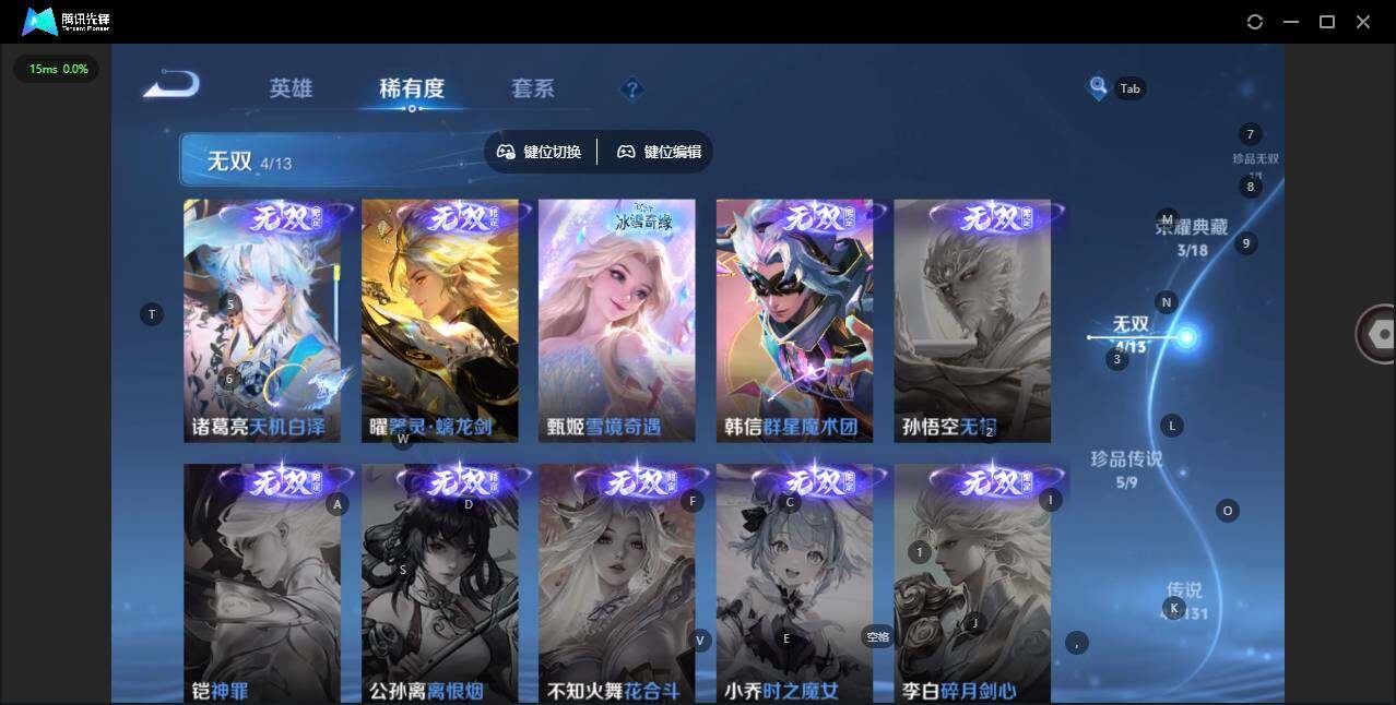 - [11942079]V7 5传说 123英雄 142皮肤 可修改实名 优质装备:末日机甲-孙尚香(绿蚂蚱),地狱火 限定皮:愿照·山河定(司空震年限),至尊宝,凤求凰(白切鸡),遇见飞天,冰锋战神,游园惊梦,梁祝,逐梦之音,永曜之星,霸王别姬-项羽,霸王别姬-虞姬 史诗皮:苍穹之光,千年之狐,修罗,鬼剑武藏,水晶猎龙者,曙光守护者,金属风暴,圣诞狂欢,圣诞恋歌,鹰眼统帅,魅力维加斯