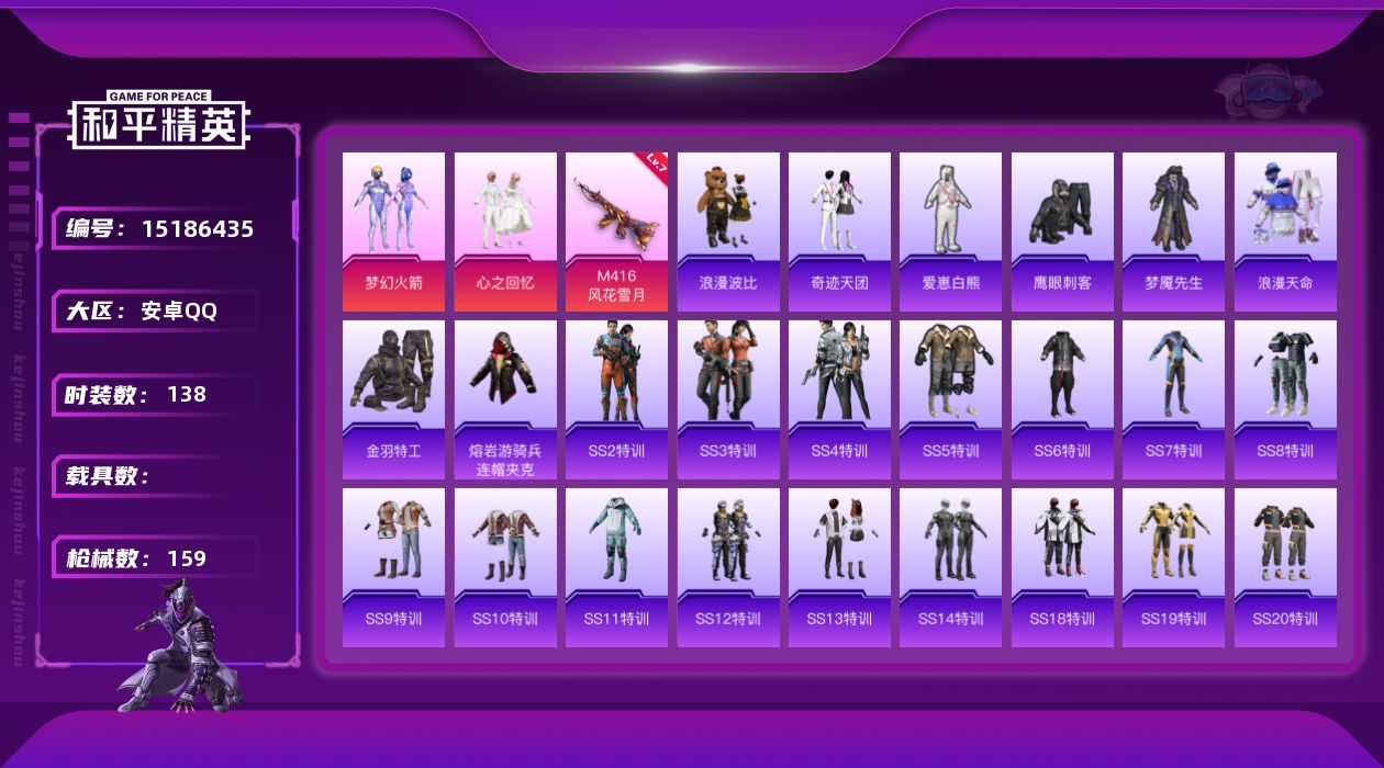 [15186435]【特价出售/店主推荐】安卓 手Q-2粉装-1特效枪-0载具-0粉色飞行器-47066热力值-2王牌印记-138套装-159枪皮