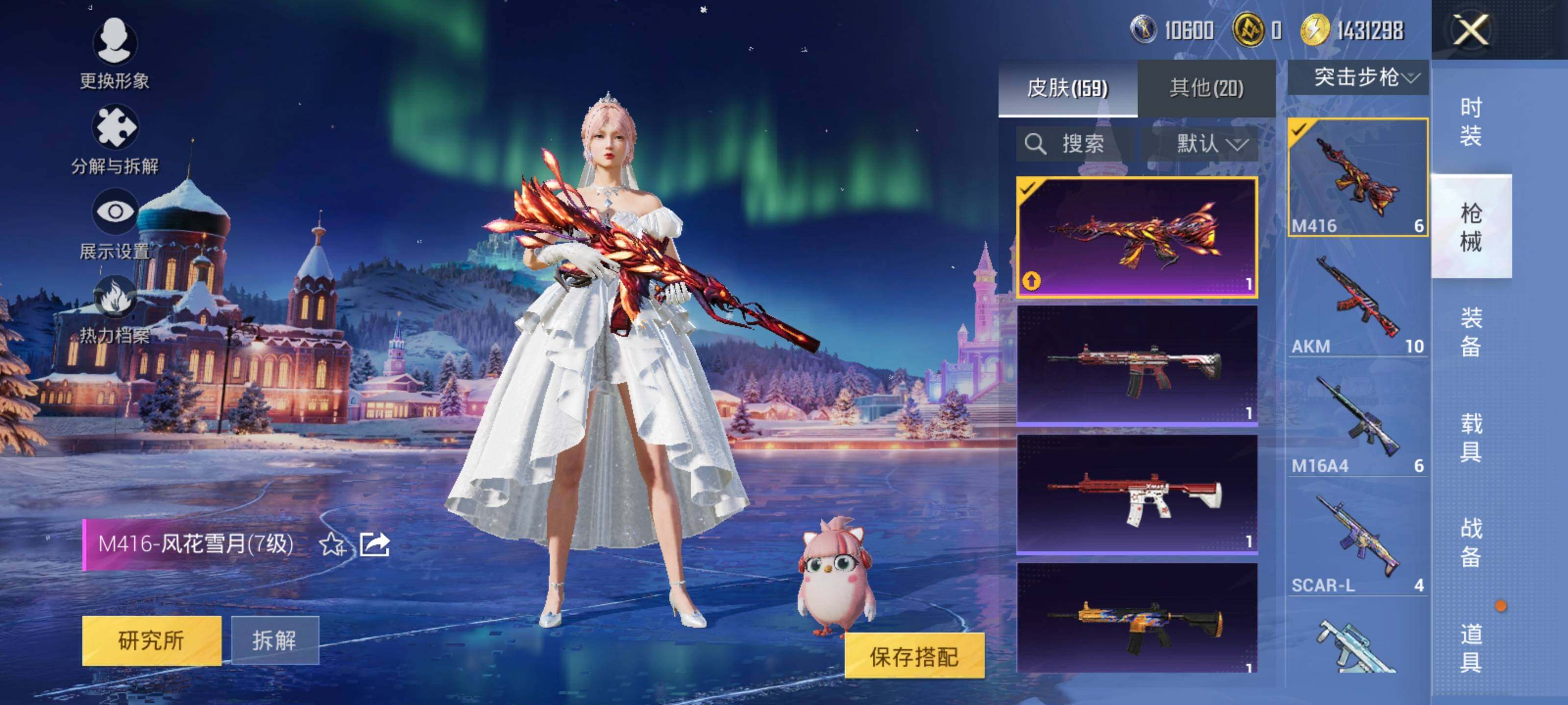 AKM-奇异狩猎者,M762-奇异狩猎者,Kar98K-古堡领主,S686-奇异狩猎者,M249-古堡领主