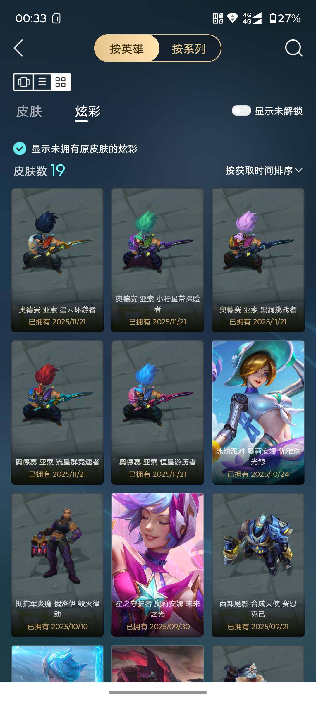【臻彩皮肤】:无畏骑士瑟庄妮赤子初心,冰霜之刃艾瑞莉娅炫金,西部魔影卢锡安贝利尔之怠,星之守护者奥莉安娜未来之光,咖啡甜心璐璐焦糖布丁,泳池派对奥莉安娜优雅珠光鲸,可爱可爱粉红红布里茨