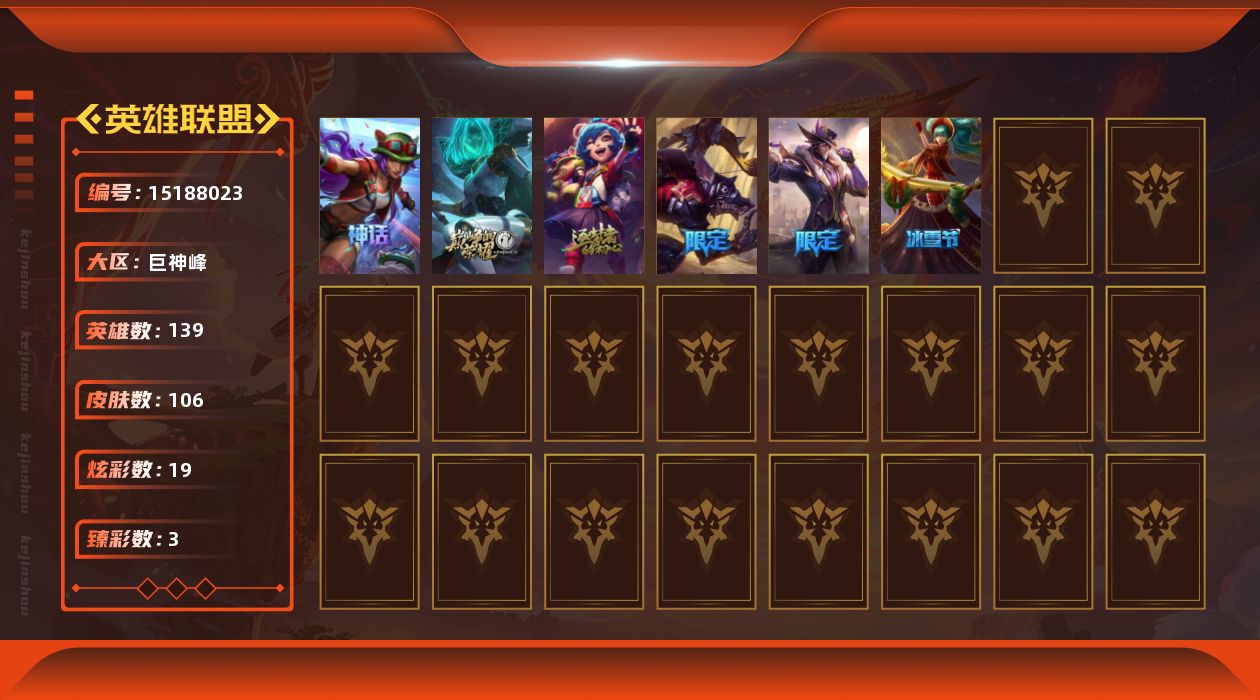 [15188023]有二次【特价出售/店主推荐】白银段位-139英雄-106皮肤-19炫彩-0终极-3神话-5限定-12传说-29史诗