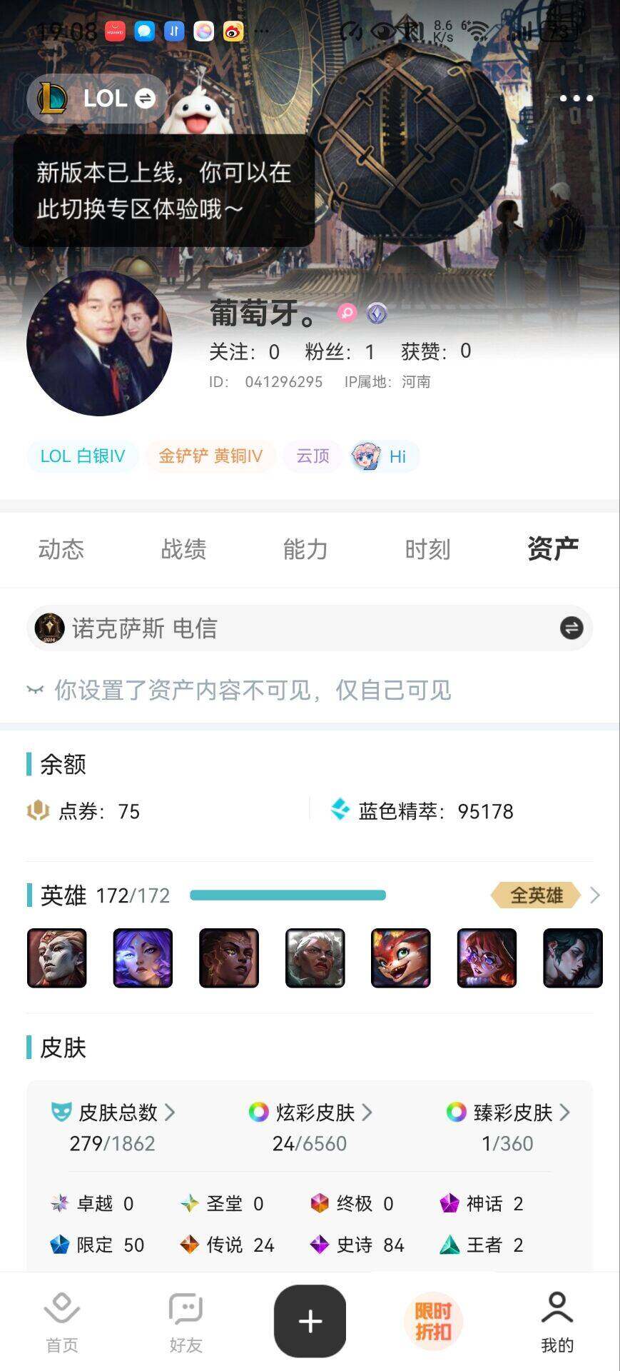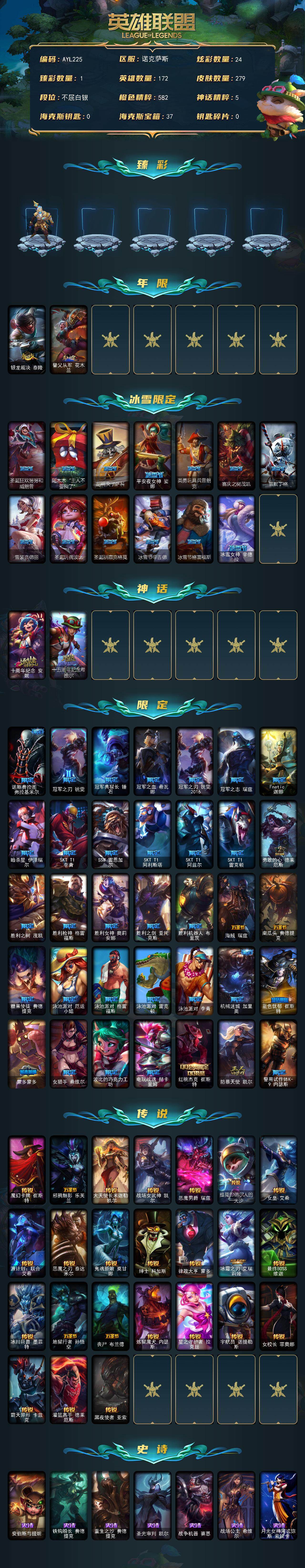 [15188047]【特价出售/店主推荐】白银段位-172英雄-279皮肤-24炫彩-0终极-2神话-50限定-24传说-84史诗