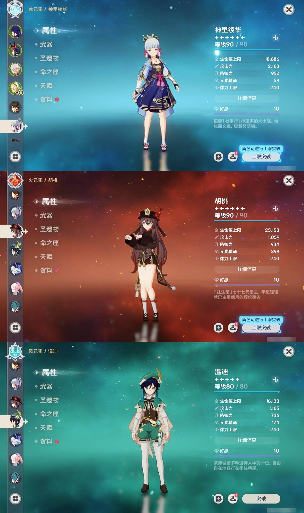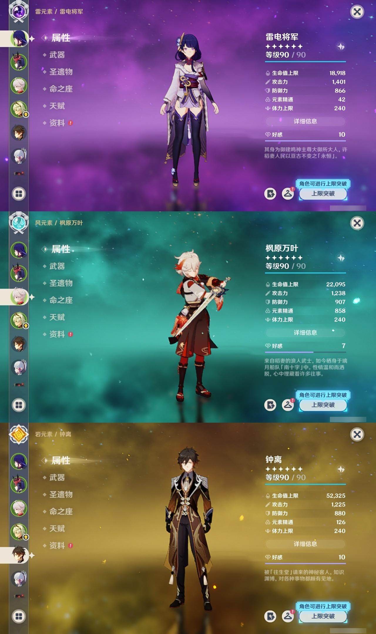 雷电将军,枫原万叶,钟离,神里凌华,胡桃,温迪,珊瑚宫心海,刻晴,七七,迪卢克,莫娜