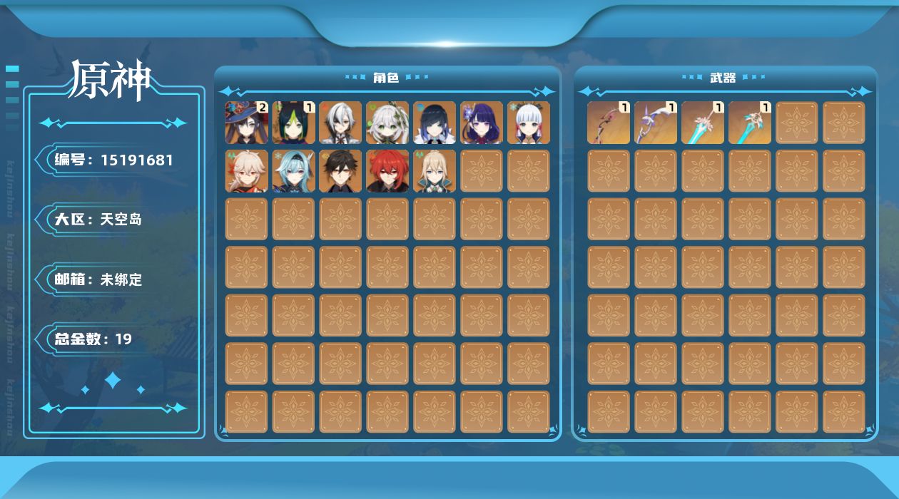 [15191681]56级/19黄/男主/12个五星角色/4个五星武器