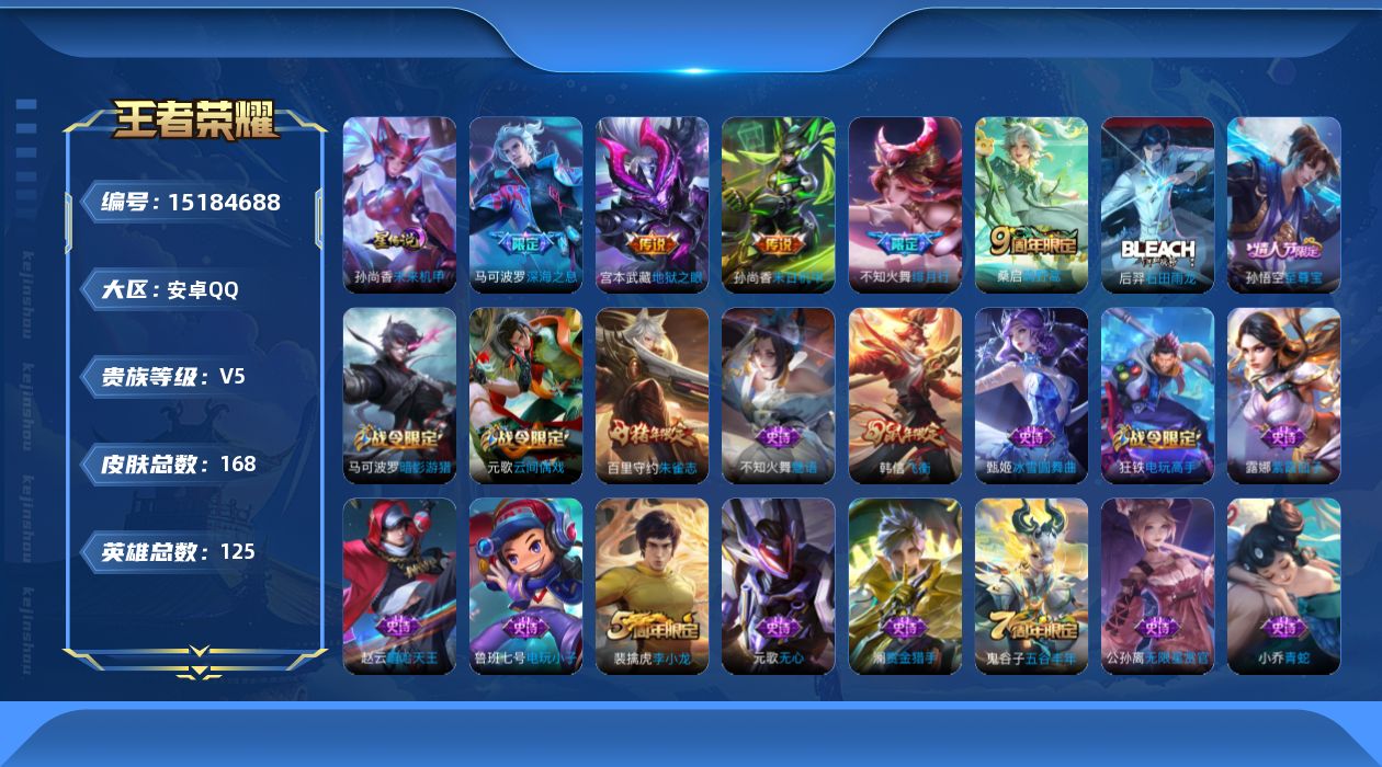 [15184688]可二次【店主推荐捡漏号!可直接换绑】,安卓Q-V5-至尊星耀V段位-125英雄-167皮肤-6传说-45史诗