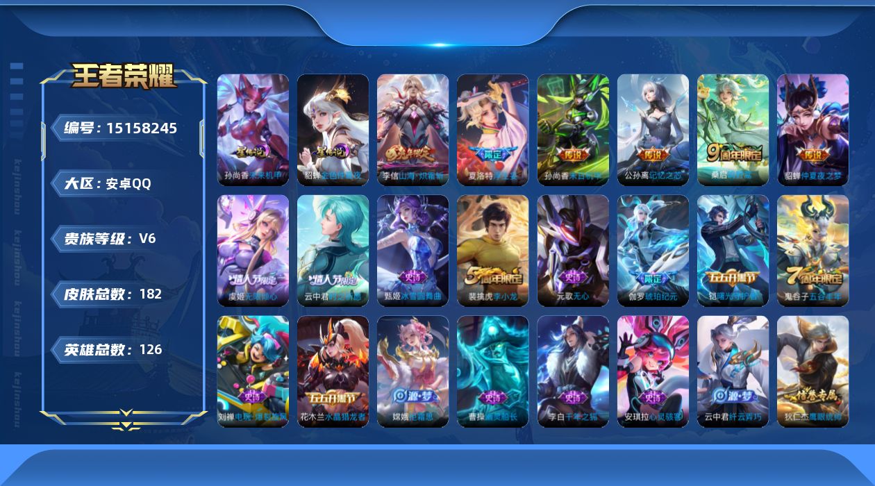 [15158245]【店主推荐捡漏号!可直接换绑】安卓Q-V6-最强王者段位-126英雄-181皮肤-8传说-38史诗