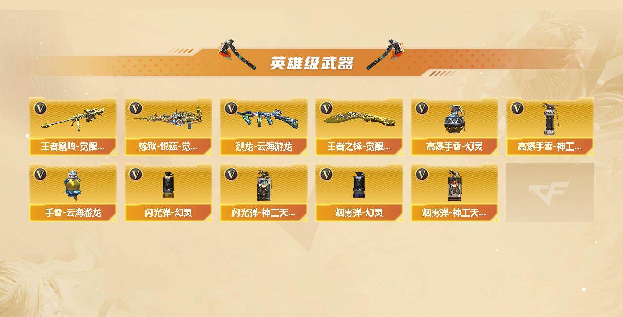 【王者炫金武器】:炫金无影,炫金毁灭,王者之魄高爆手雷*2,王者之魄烟雾弹