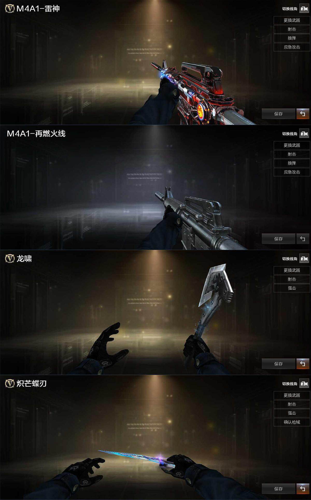【皮肤】:雷神-暗月,M4A1-再燃火线,轻型军用手斧-再燃火线,炽芒蝶刃-破浪逐光 皮肤