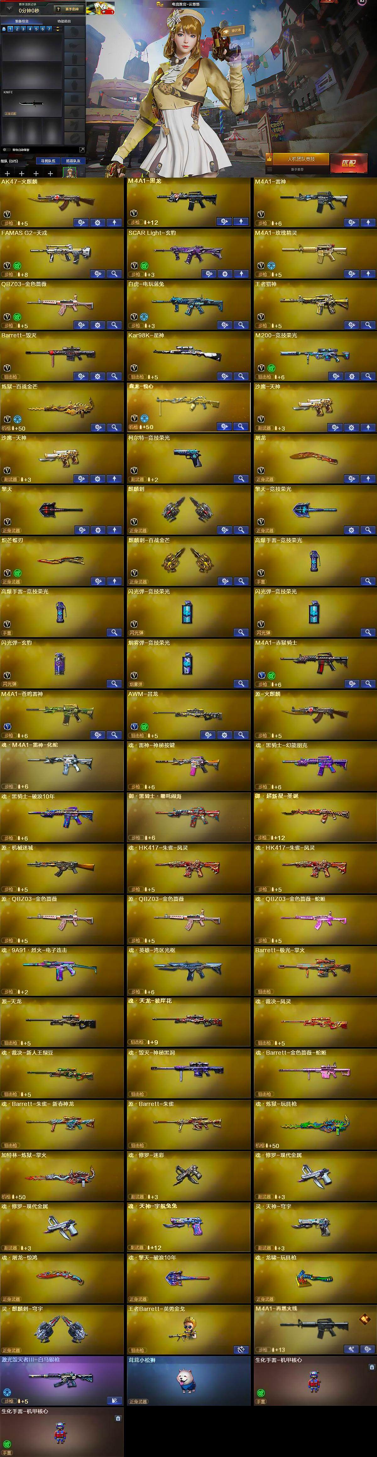 - [15481013]河南一区-32V-0王者-1炫金 【热门武器】:QBZ03-金色蔷薇,死亡之眼,汤姆逊-烈龙*6,RPK-盘龙,斯泰尔-蝴蝶 【王者炫金武器】:炫金毁灭 【皮肤】:雷神-能量核心,雷神-烈虎皮肤,火麒麟-心动糖果,黑龙-暗月,战神-粉色甜心皮肤,战神-紫绶金章皮肤 【角色】:葵,乔伊教练,北极狐-X,芳心审判者,飞虎队-X,虎妞,灵狐者-X,灵狐者-职业经理,麻雀,潘多拉-甜心教官,青霞仙子,斯沃特-X,铁骑荣耀,夜玫瑰-宠粉 【人偶武器】:斯泰尔-蝴蝶,COP-旗袍,迷你深渊冰龙,迷你裂空之翼*2,迷你波特博士*3,迷你曼提柯尔,迷你火种,迷你生化手雷*2 【暴走生化】:死亡之眼,超级对讲机 【挑战大师】:神圣爆裂者III 【英雄级武器】:M4A1-千变,AK47-火麒麟*2,M4A1-雷神,AK12-天启*2,M4A1-龙血,QBZ03-金色蔷薇,Barrett-毁灭,Barrett-金色蔷薇,RPK-盘龙,汤姆逊-烈龙*6,沙鹰-天神*2,麒麟刺,斩神刀-雷暴,高爆手雷-雷暴*3,闪光弹-雷暴*3,烟雾弹-雷暴*3 【道具】:白狐背包,绿色巨人,灵魂忍者*2,变异宝贝,迷雾幽灵,生化弹匣,夺命之镰,防化服*2,金色流光-枪王排位,枪王排位28赛季金色流光,防弹头盔*2,防弹衣*2,C4工具钳*2,手雷包*3 【特殊枪械】:蝴蝶斯泰尔+6烈龙,6烈龙,1盘龙,1蝴蝶斯泰尔