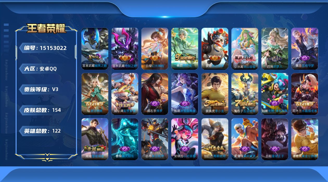 [15153022]【特价急出/详情看图】安卓Q-V3-永恒钻石I段位-122英雄-154皮肤-5传说-37史诗