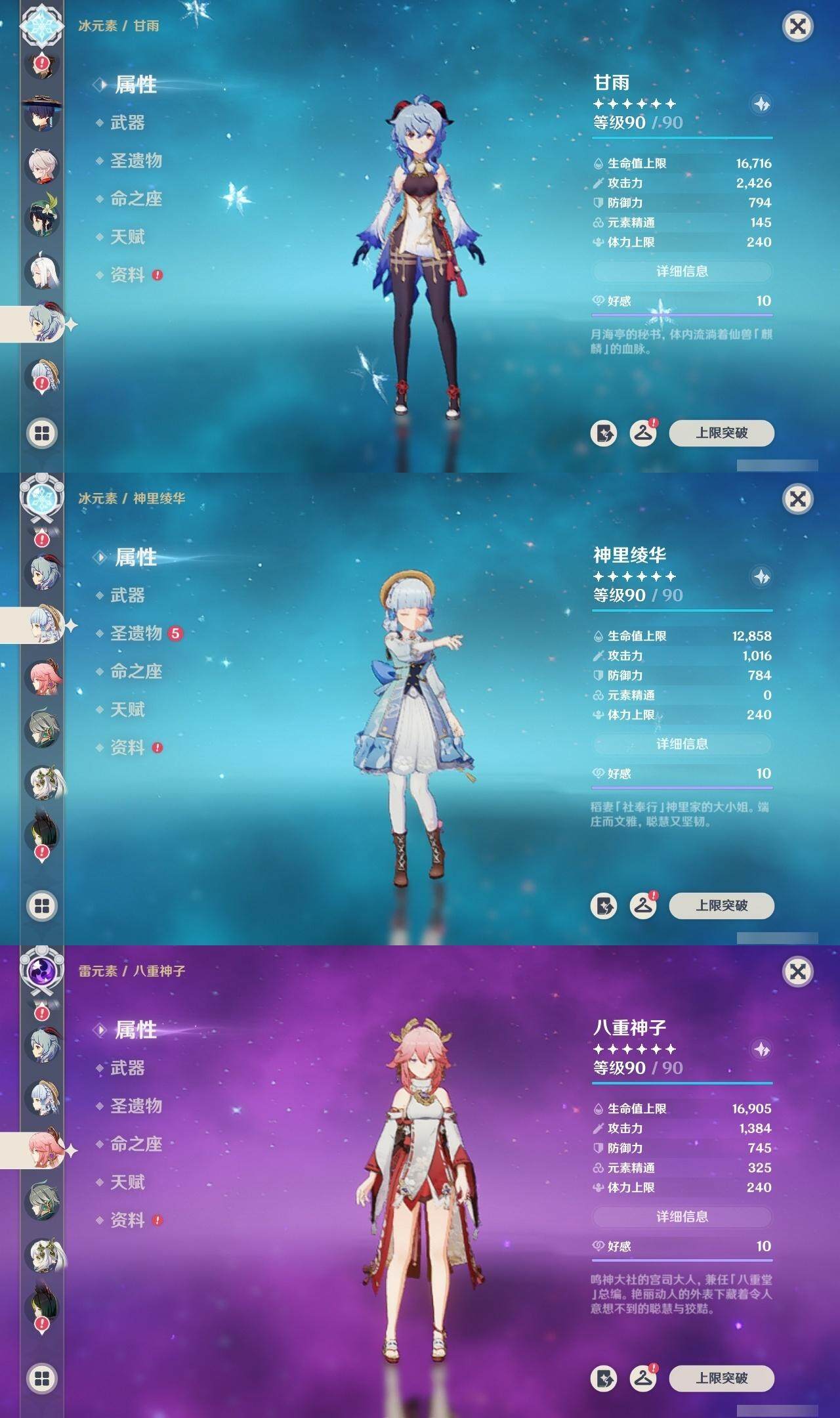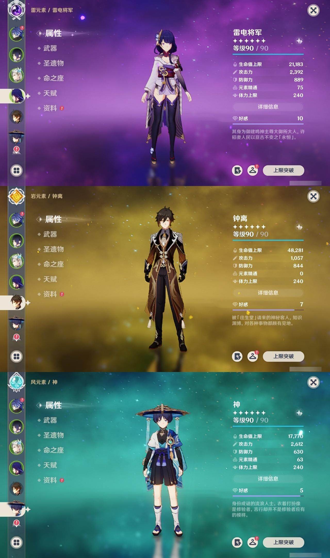 雷电将军,钟离,枫原万叶,温迪,申鹤,甘雨,神里凌华,八重神子,珊瑚宫心海,宵宫,琴,刻晴,迪卢克,莫娜,七七