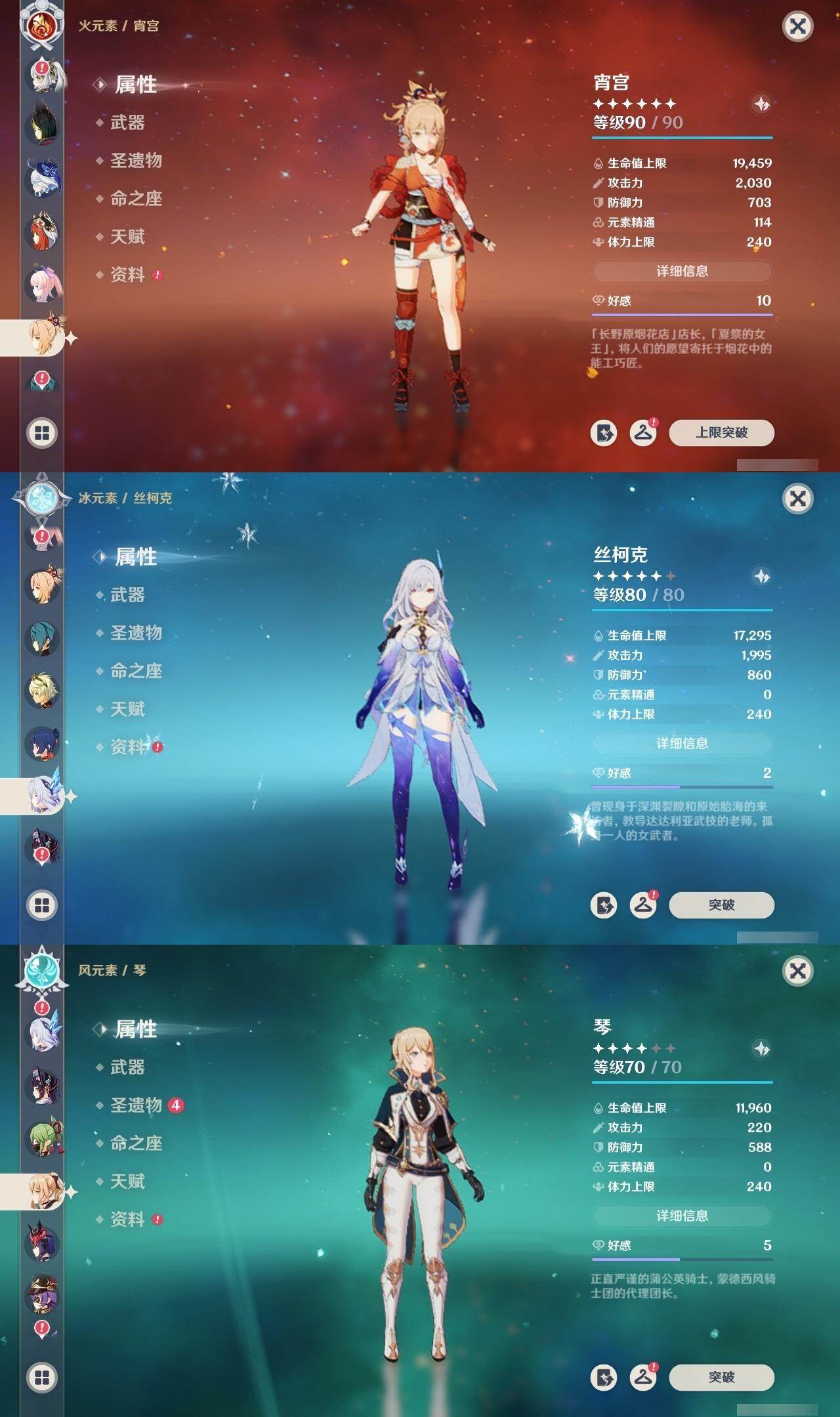 - [15241219]60级/30黄/女主/19个五星角色/7个五星武器 0命闲云,0命芙宁娜,0命白术,0命艾尔海森,0命纳西妲,0命提纳里,0命神里绫人,0命雷电将军,0命枫原万叶,0命钟离,0命胡桃,0命甘雨,0命魈,0命达达利亚,3命刻晴,0命七七,1命琴,0命莫娜,0命迪卢克,精1千夜浮梦,精1苍古自由之誓,精1四风原典,精1阿莫斯之弓,精1天空之刃,精1风鹰剑,精1狼的末路