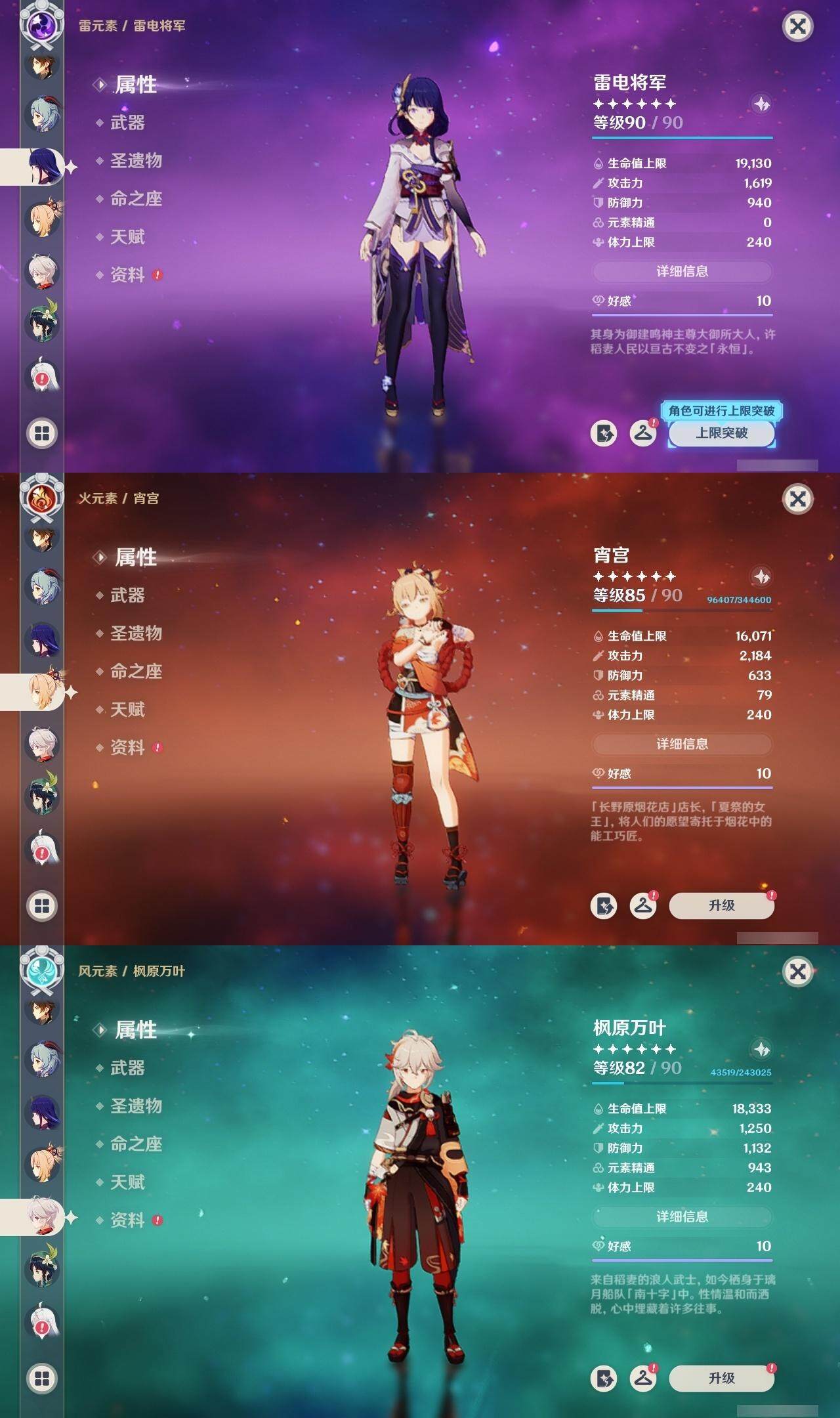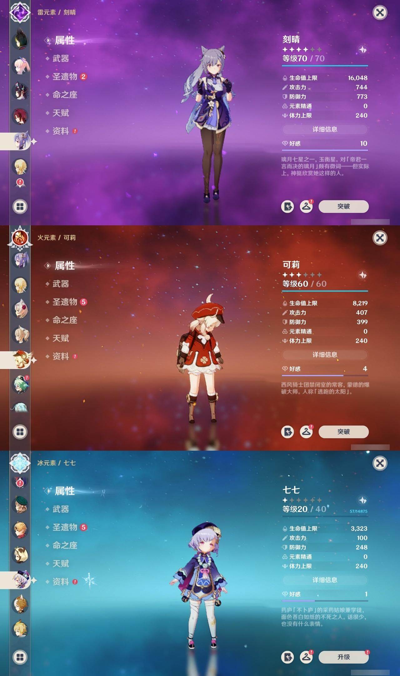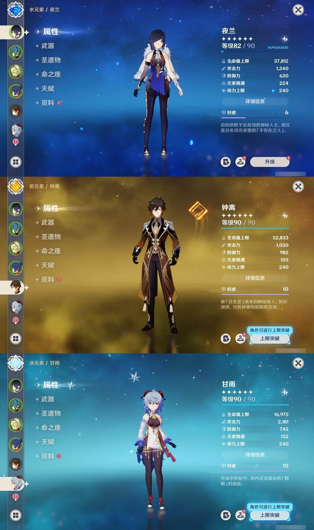 钟离,甘雨,雷电将军,宵宫,枫原万叶,温迪,申鹤,莫娜,迪卢克,珊瑚宫心海,刻晴,可莉,七七