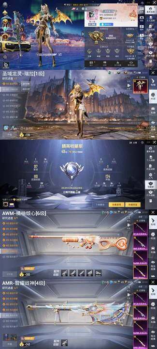 【粉色枪皮等级】:Kar98K-圣域龙灵(一级),AWM-橘柚倾心(六级),AMR-智耀战神(四级),DP-28-豹影疾电(一级)