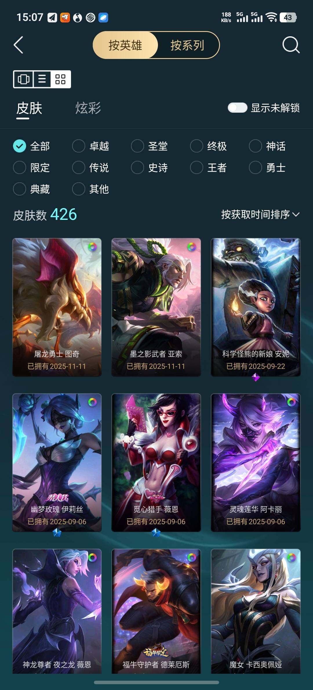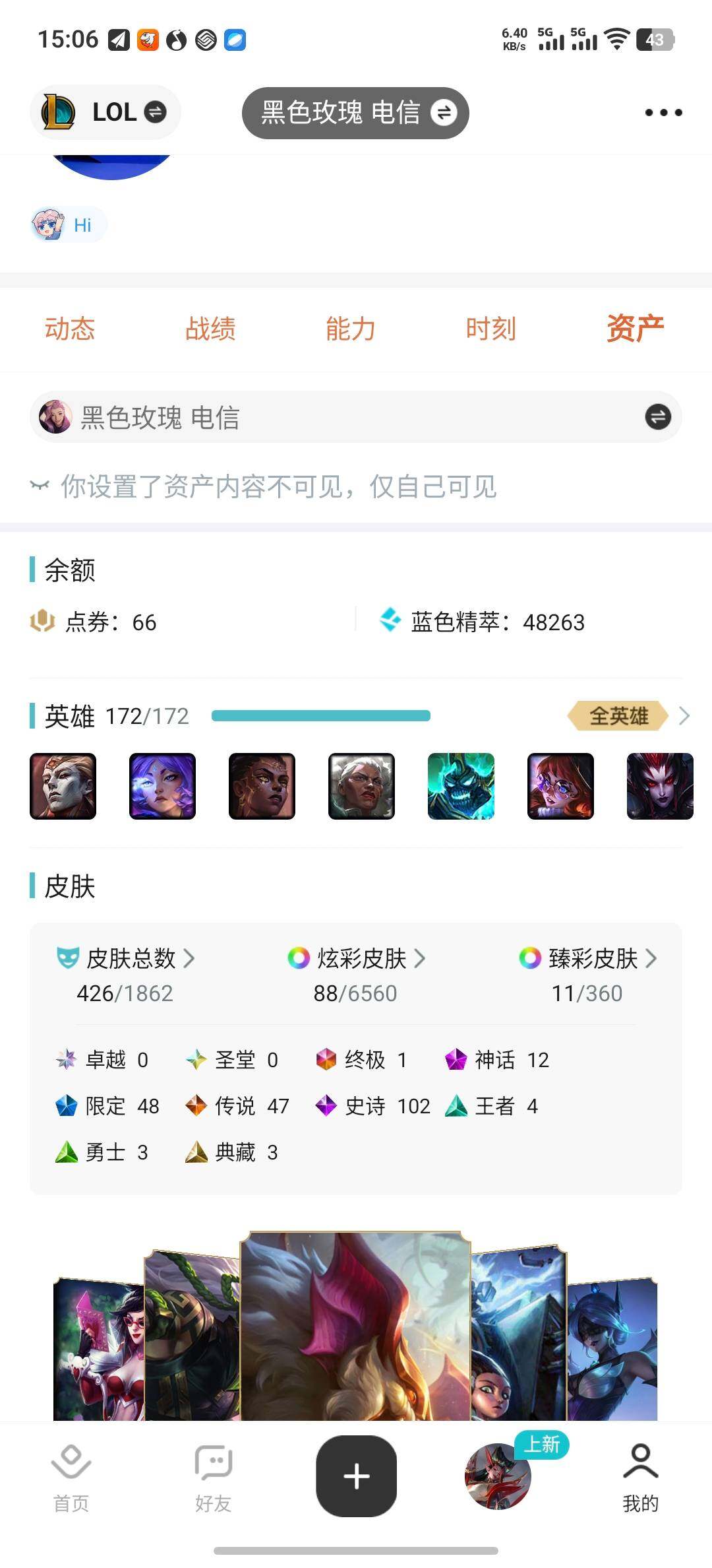 [15216427]【店主推荐捡漏号!可直接换绑】白银段位-172英雄-426皮肤-88炫彩-1终极-12神话-48限定-47传说-102史诗