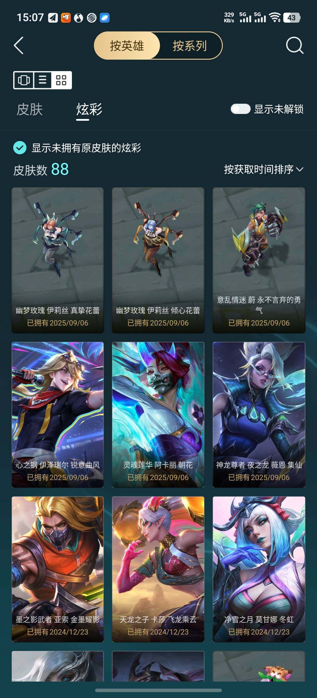 【年限皮肤】:神龙烈焰金克丝,王国机神白虎贾克斯,福牛守护者德莱厄斯,剪纸仙灵艾瑞莉娅,天龙之子斯莫德,点心宝贝阿木木