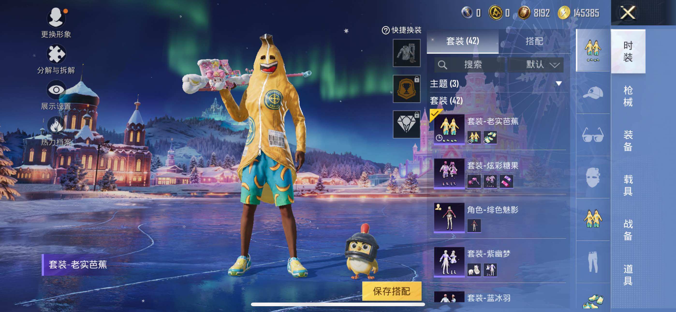 【稀有套装】:套装-紫幽梦,套装-蓝冰羽,角色-绯色魅影,套装-炫彩糖果