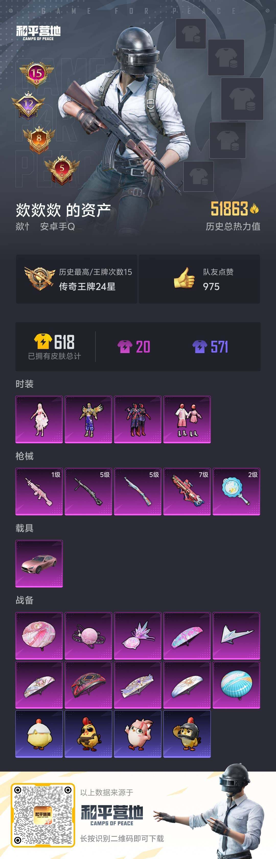 [15223325]【店主推荐捡漏号!可直接换绑】安卓 手Q-4粉装-5特效枪-1载具-3粉色飞行器-51863热力值-15王牌印记-128套装-162枪皮