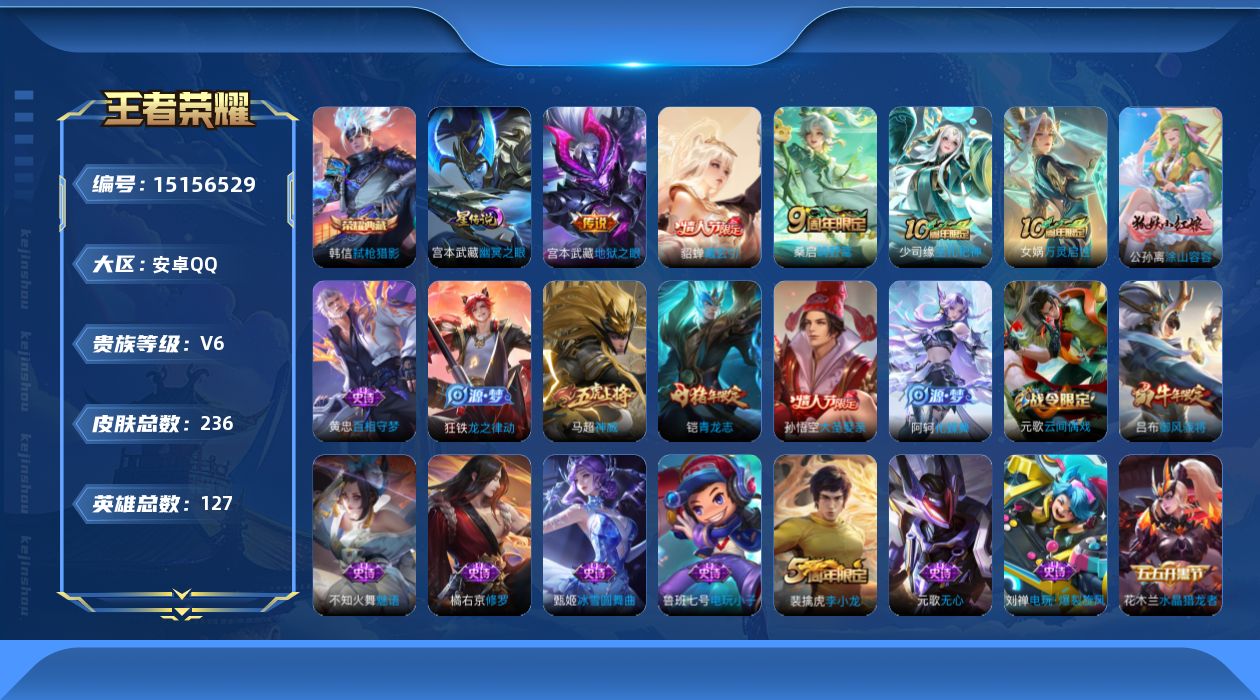 [15156529]可二次【店主推荐捡漏号!可直接换绑】安卓Q-V6-最强王者段位-127英雄-236皮肤-1典藏皮肤-3传说-1星传说-63史诗